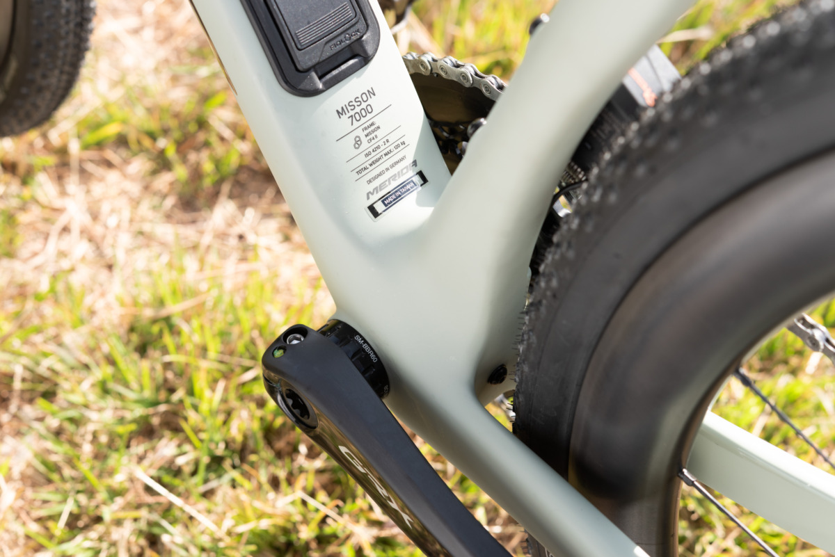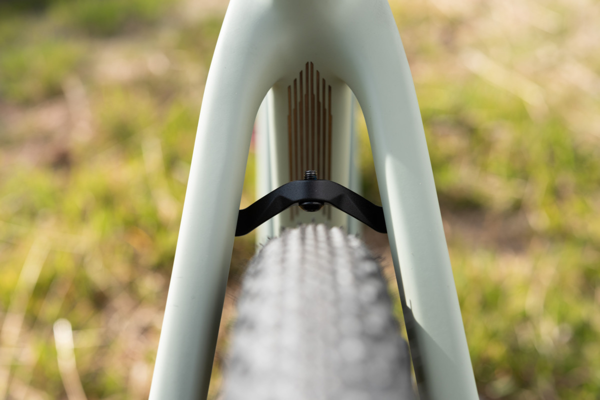 タイヤクリアランスは最大700×40C を想定し、近年の「極太タイヤ志向」一辺倒とは一線を画す。同社のサイレックスのタイヤクリアランスが最大700C×45Cであることを考えると、あえてクリアランスを絞ることで、チェーンステーを短く保ち、ロードライクなペダリングフィールと鋭い加速感を実現しているのがミッションの個性だ。軽量なカーボンホイールと組み合わせれば、ヒルクライムから高速グラベルレースまで、まさに「速さを狙えるグラベルバイク」として仕上がっている。