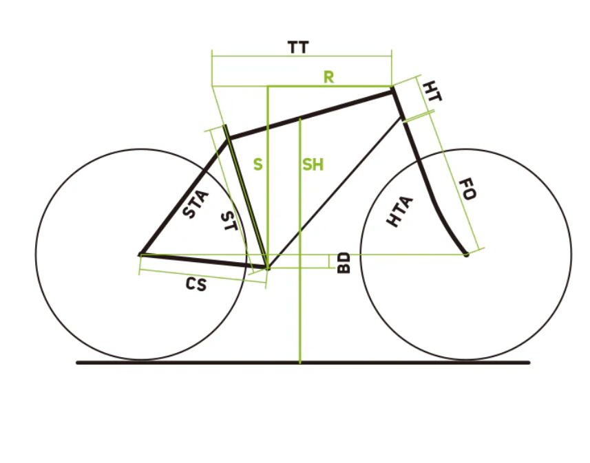 | TOP TUBE (TT) | 522 | 532 | 543 | 560 | 571 |