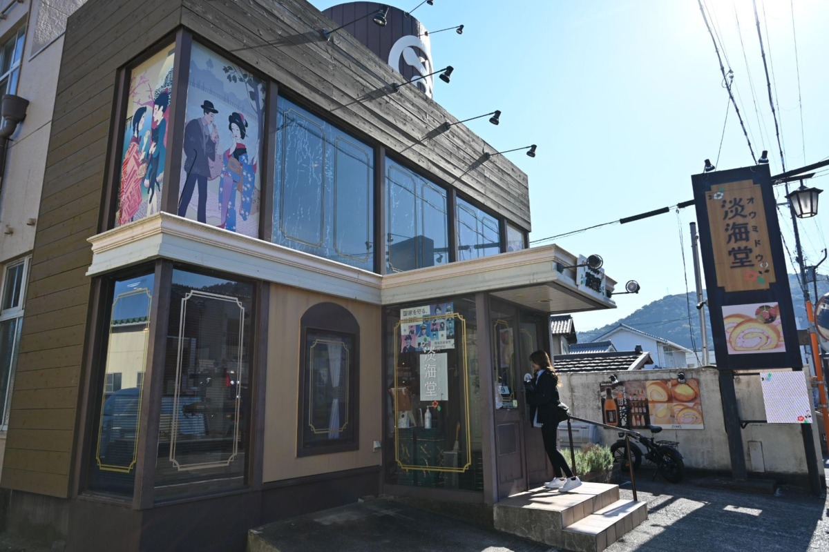 酒蔵を通り過ぎて100mほど進むと、「淡海堂(おうみどう)」というお酢とお菓子のお店が見えてきます。元・金融機関の建物をリノベしたレトロ感がたまらない…!