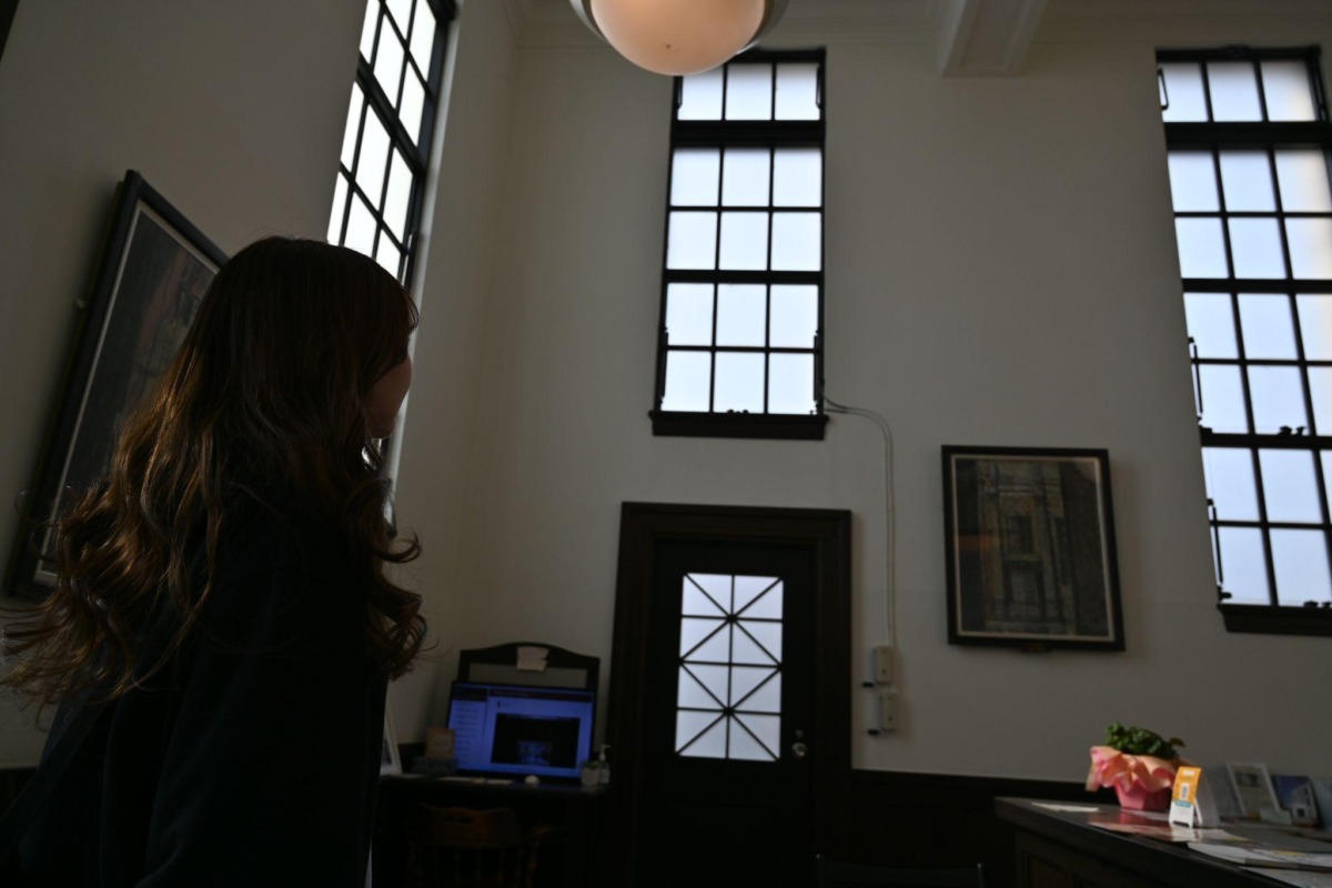 まずは「今津ヴォーリズ資料館」へ。元は銀行の支店として建てられた建物で、今は資料館に。中にはカフェもあるそうで、建築×カフェ好きにはたまらない場所です。