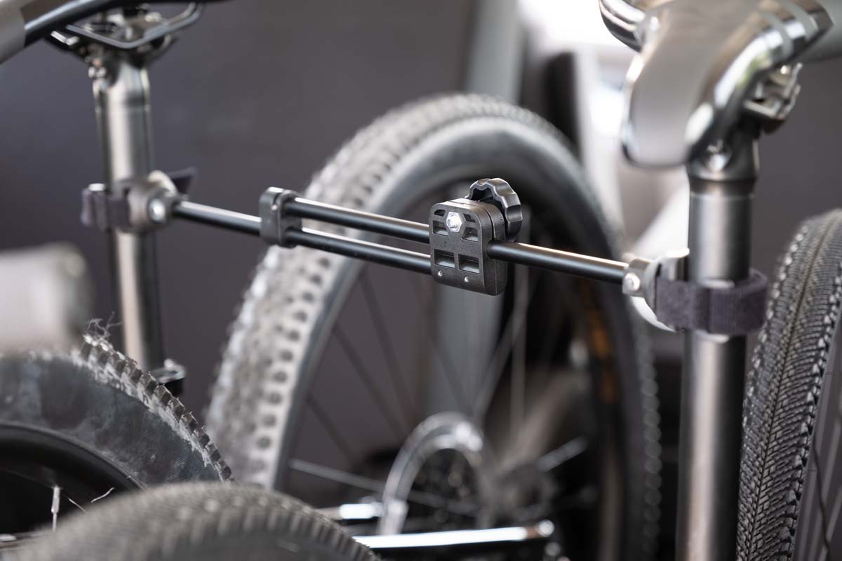 車載時の最大の不安は、やむを得ない急ブレーキやカーブでの自転車の挙動だ。付属の「ASB-10 アシストバー」は、シートポスト同士や車のアシストグリップなどをつなぐ突っ張り棒のような役割を果たす。これにより3点支持が可能となり、固定力は劇的に向上する。安心して運転に集中するためには欠かせない装備だ。