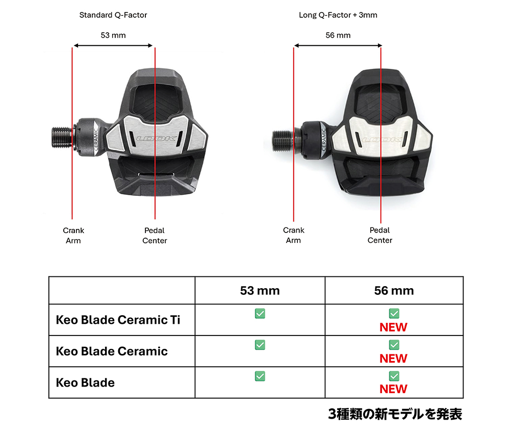 KEO BLADEにラインアップ追加 56mm軸のロングQファクターモデルと低テンション仕様が登場|LOOK