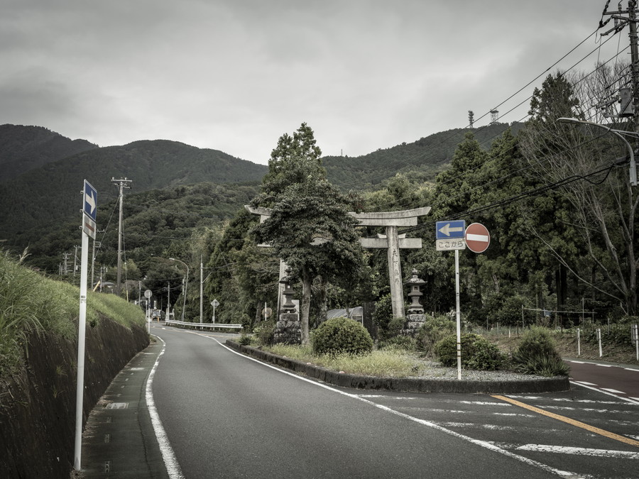 この峠を登り始めると、明らかに空気が変わる。住宅地の中にある登り口は、登校中の児童生徒や職場へ急ぐ自動車の喧騒で満たされていたかと思えば、勾配が増す蓑毛の集落へと入っていくと、しんと静かになる。道路の中洲にある鳥居を過ぎると、また世界が変わる。