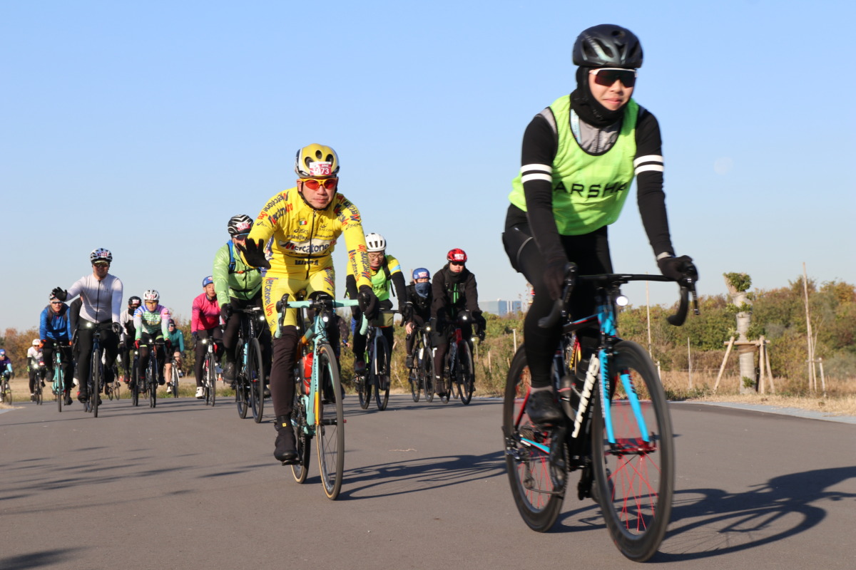トピックのひとつは、今年3月に正式オープンしたばかりの「海の森公園」内をコースとして走れたことだ。海の森公園は、東京湾の埋立地を再生して整備された広大な都市型公園で、これまで長らく一般開放前の存在だった場所だ。東京2020大会の会場としても知られるこの一帯を、サイクリングイベントの舞台として走れるのが大きな魅力となっている。