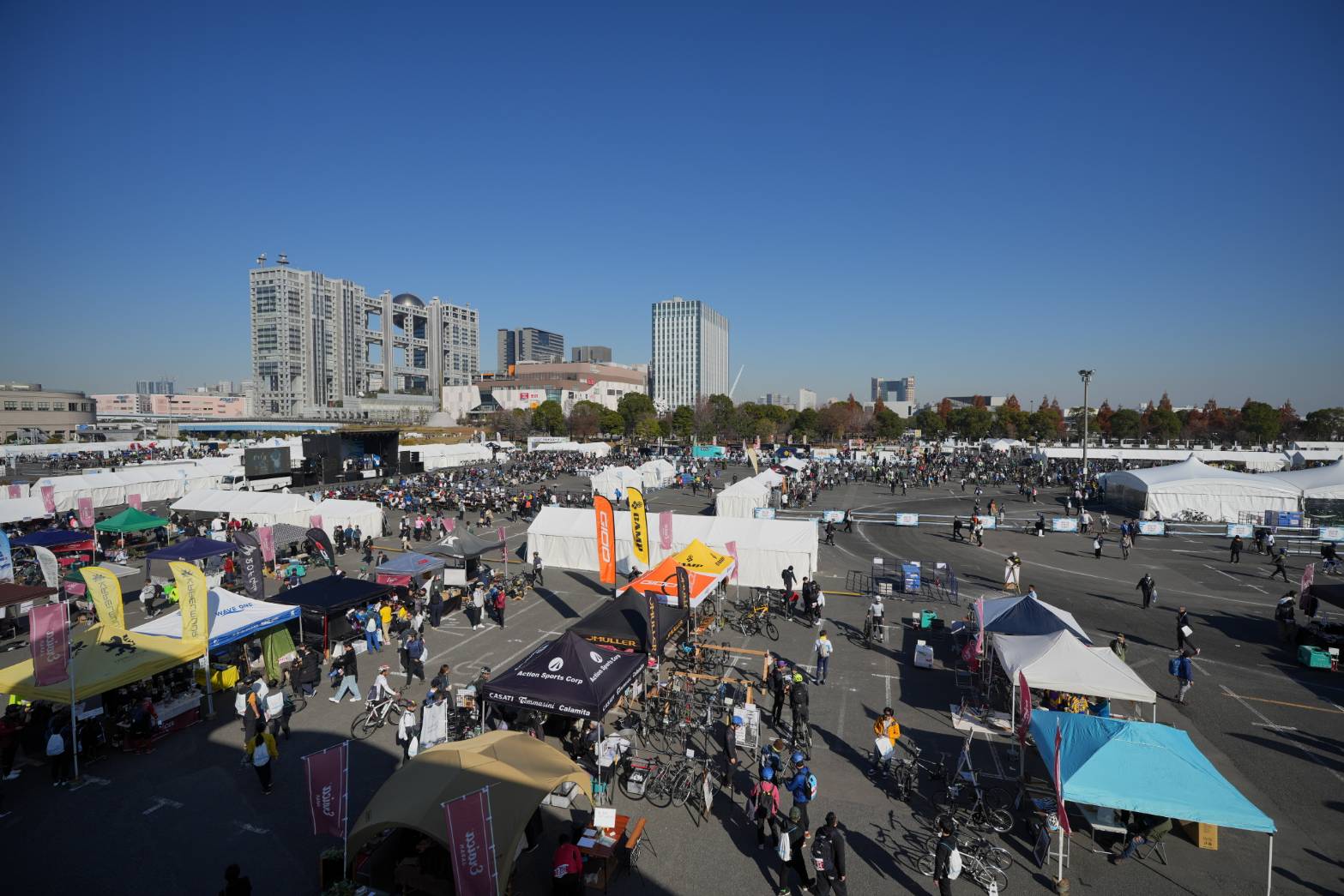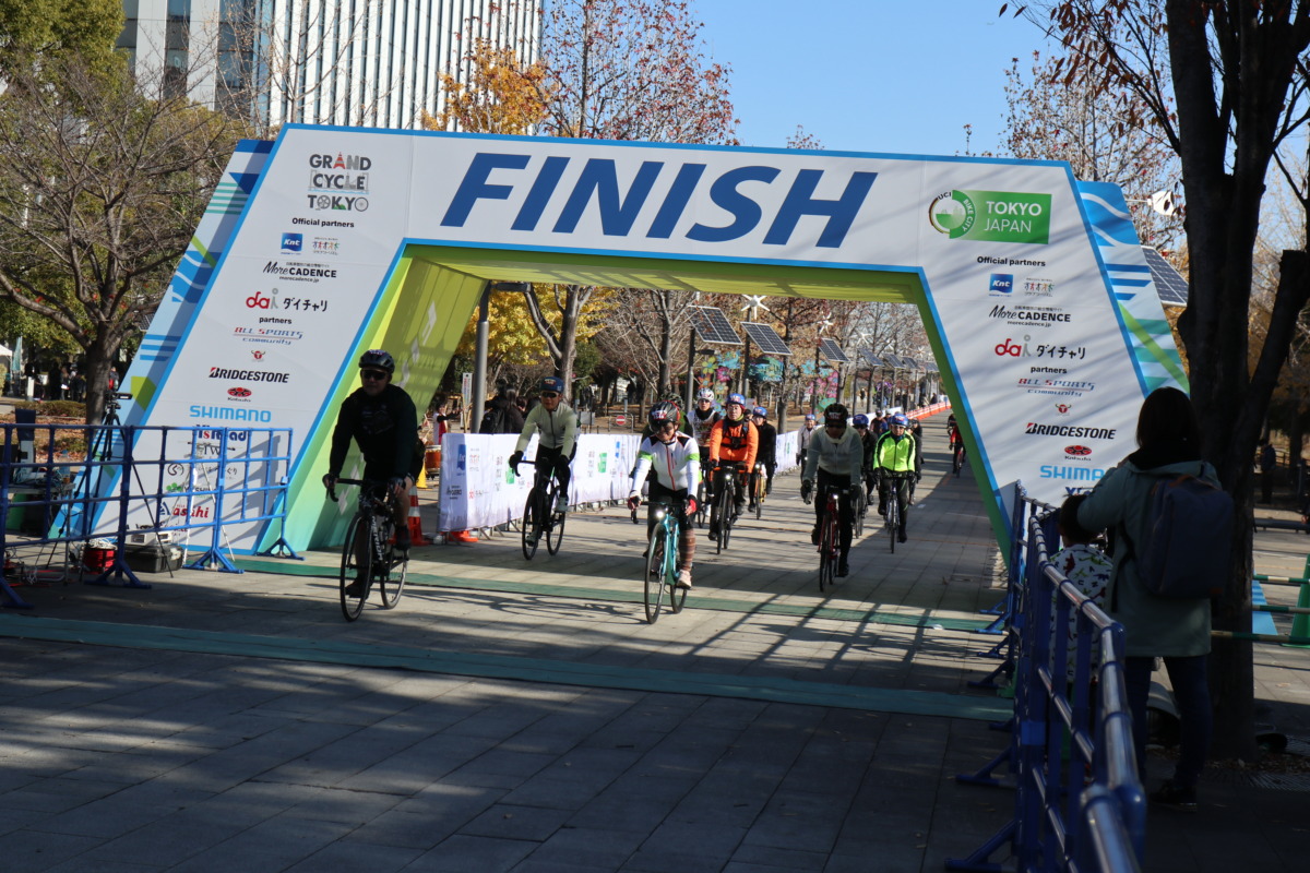 約37kmの走行後、フィニッシュ。ゴールエリアとなるメイン会場では、 GRAND CYCLE TOKYO マルチスポーツが併催されていた。