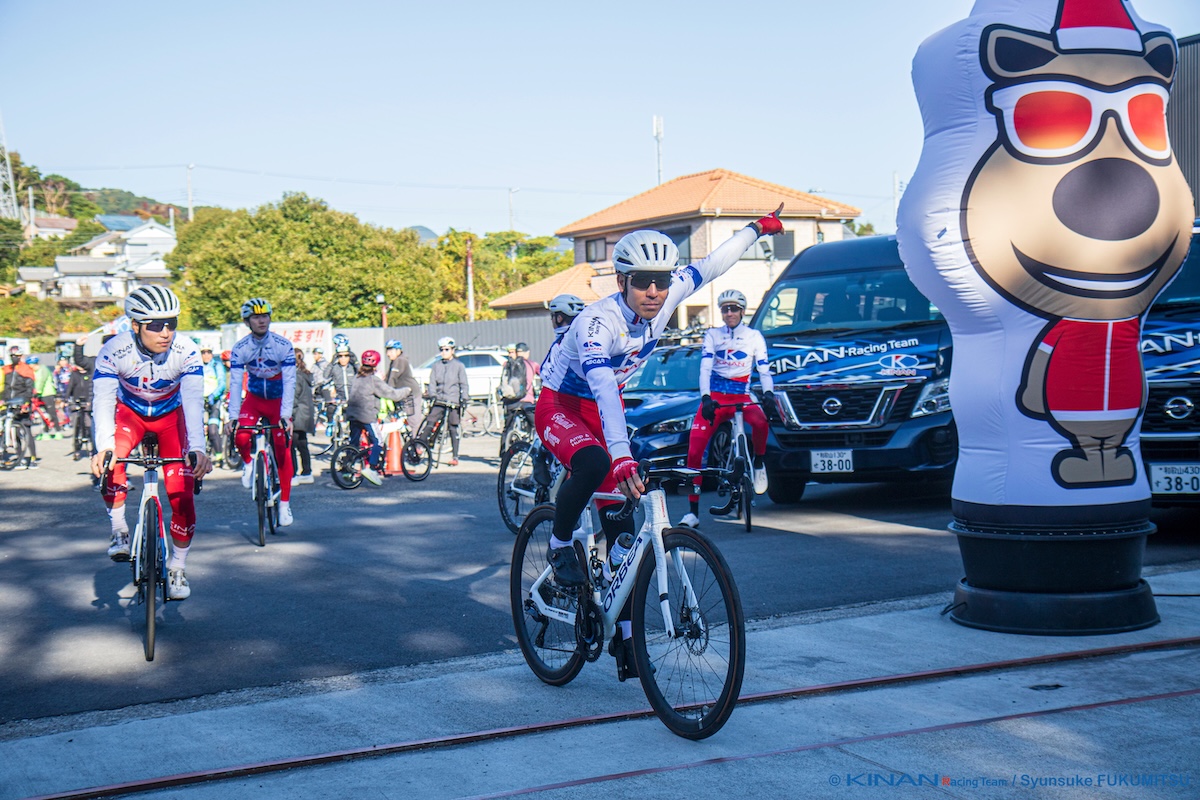 また、本イベントは今季限りでチームを退団する柚木伸元と宮崎泰史の「送別会」としての側面も持っていた。スタート前に行われたセレモニーでは、両選手が大勢の参加者・ファンの前で挨拶。キナンジャージを着用しての最後のチーム活動として、リラックスした表情でファンとの別れを惜しみつつ、最後のライドを噛み締めていた。