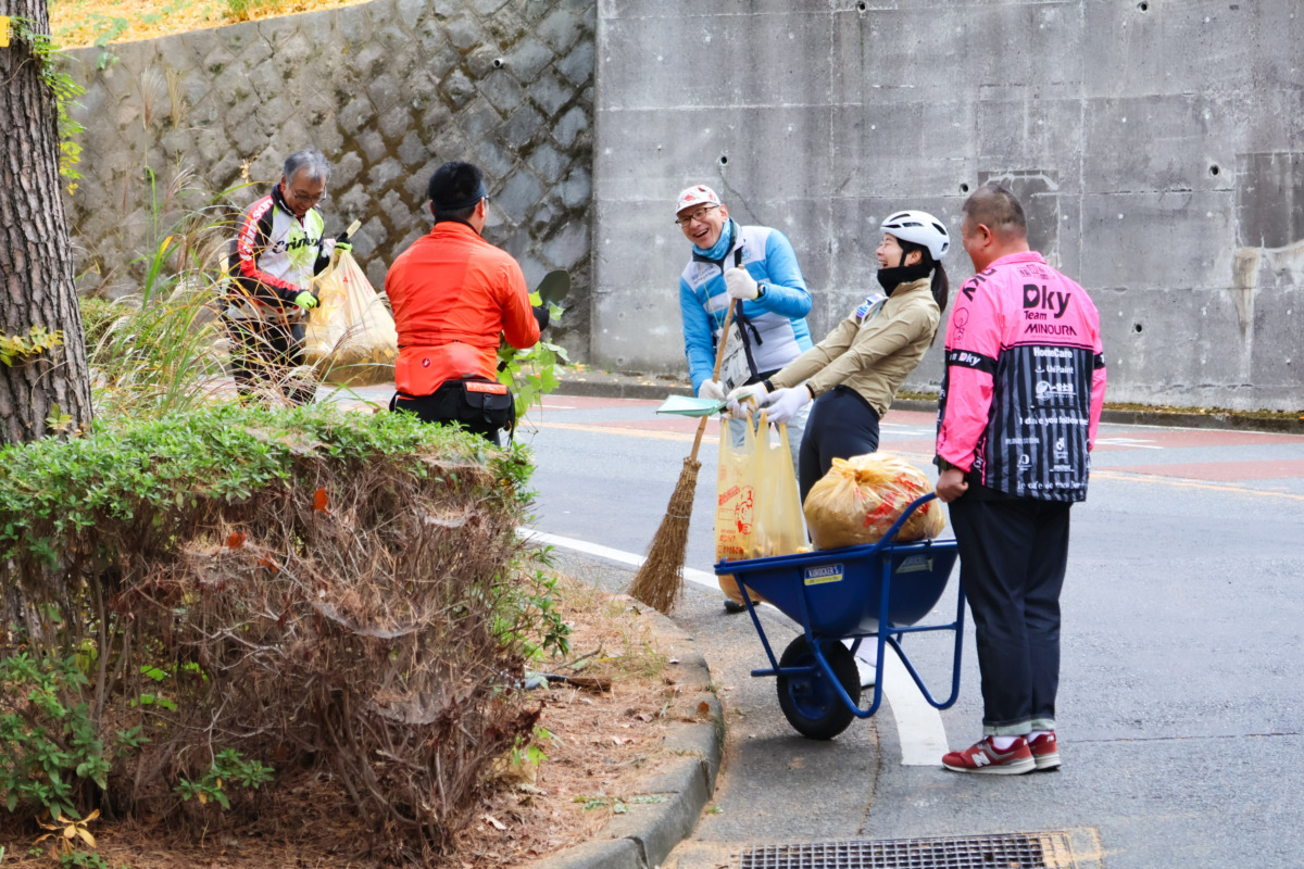 「途中、坂を登るサイクリストにもお声掛けして仲間に加わってもらうなど、自転車を通じた輪が広がって嬉しい限りです」と藤條たかゆき市議もSNSでコメントした。この日は、坂を登ってくる通りがかりのサイクリストにも清掃活動に加わってもらう場面があり、3人の仲間が増えた。自転車を通じて輪が広がっていく光景は、この清掃の象徴的なシーンでもある。