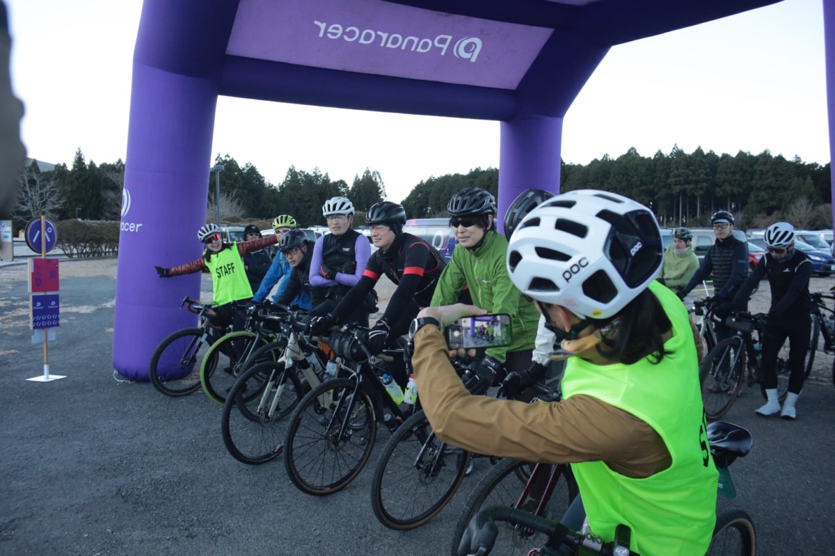 今回、山口が参加するのは第8グループ。スタート前には各グループに分かれ、コースの説明と自己紹介をしたのち、パナレーサーゲートの下から笑顔とともにスタートしていった。