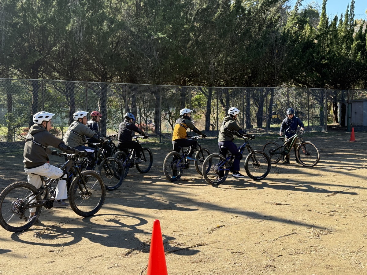 市川三郷町役場職員によるMTB研修の様子。楽しみながらスキルを身につける