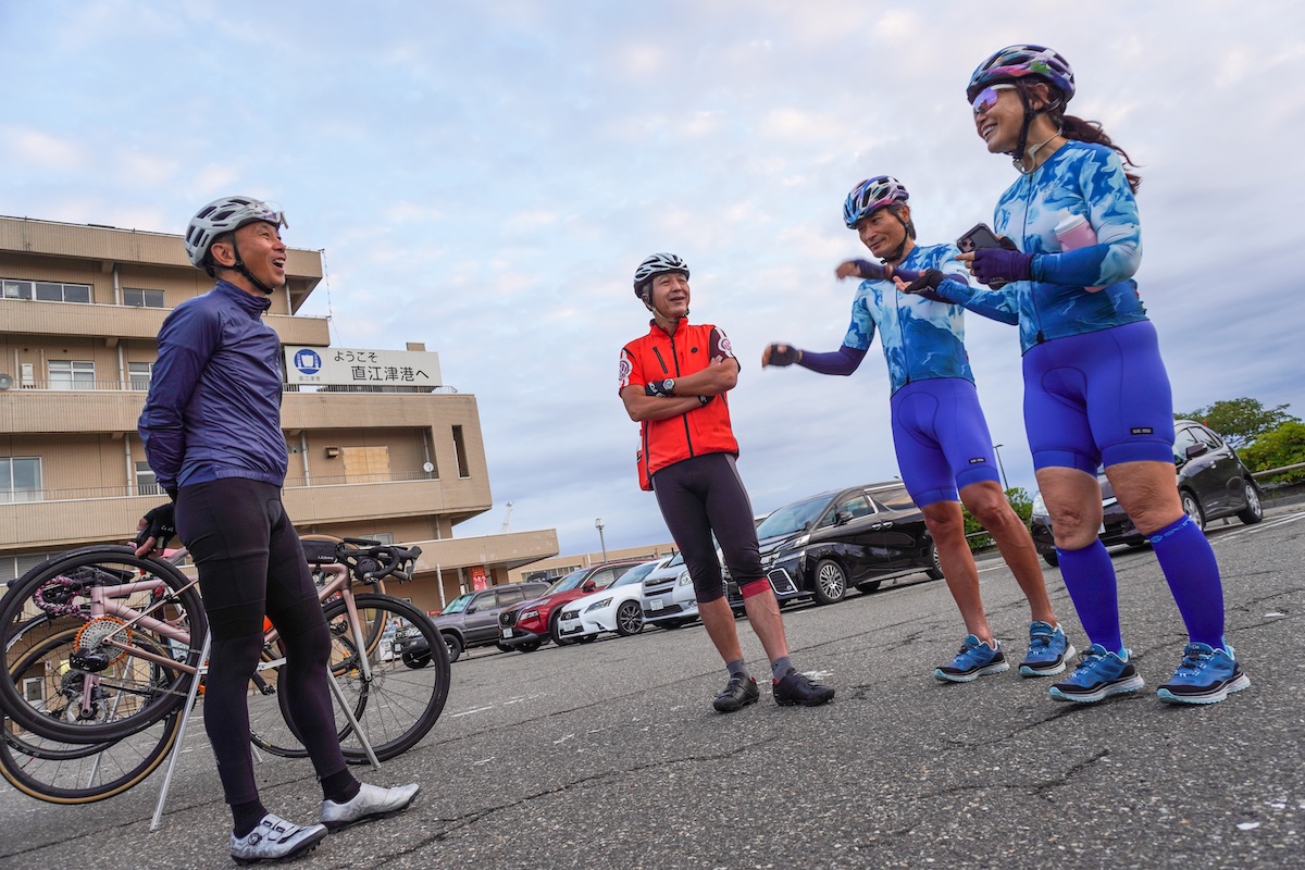 初日は新潟県佐渡市にある、きらりうむ佐渡からスタート。本州と海を隔てた佐渡島から4日間の長丁場が始まる。この日は、佐渡を拠点に活動する自転車チーム「佐渡ゴールデンアイビス」の重田倫一郎選手と鈴木道也選手が、島内の黄金KAIDOのルートを案内。地理に明るい両選手のおかげでライドがスムーズに進む。