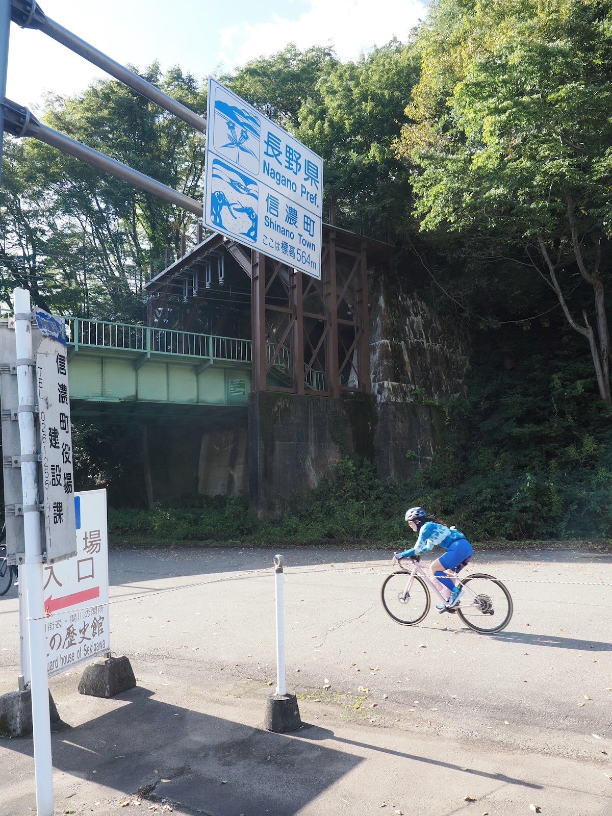 ランチを早めに済ませた山田さんは、「上りは苦手だから」とひと足早く白沢峠へと向かっていく。県道406号を約15km上って白馬村へとつながる白沢洞門をくぐると北アルプスが出迎えてくれる。ここまで走り抜いてきたサイクリストへの自然からの贈り物のようだった。