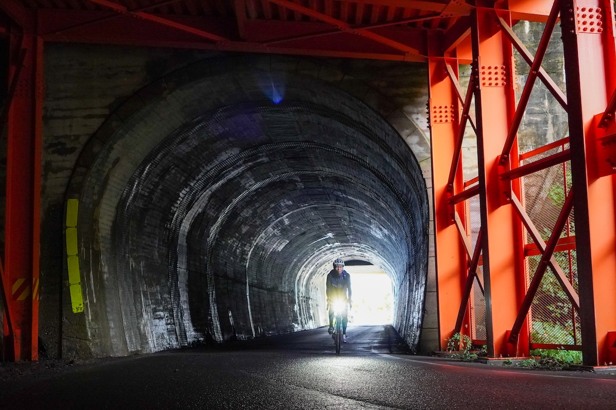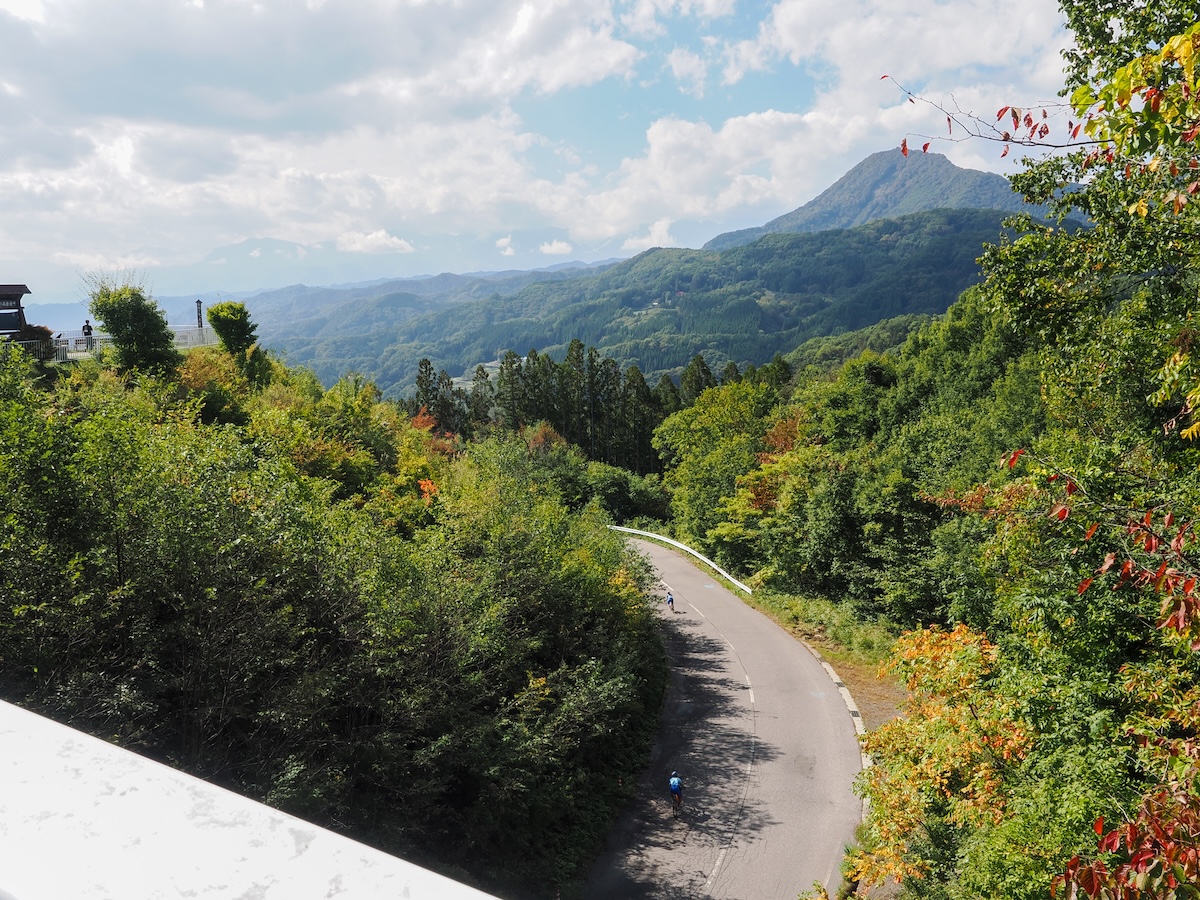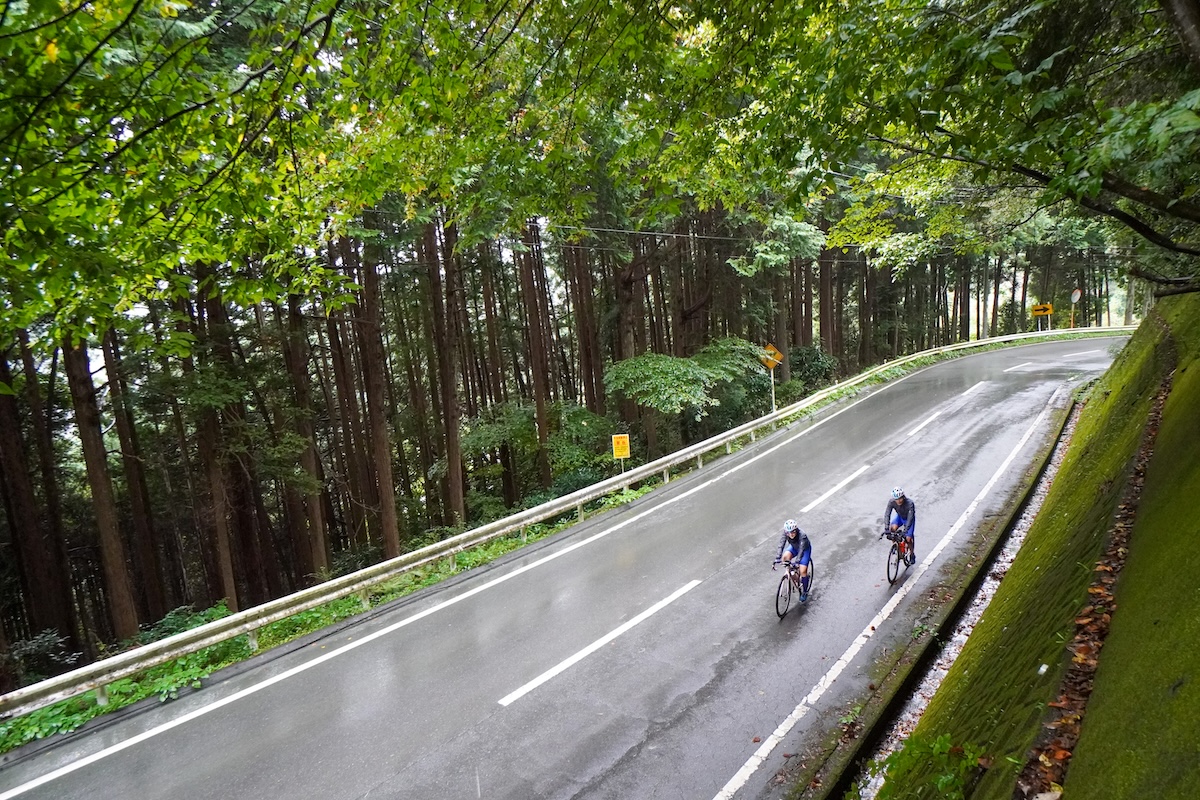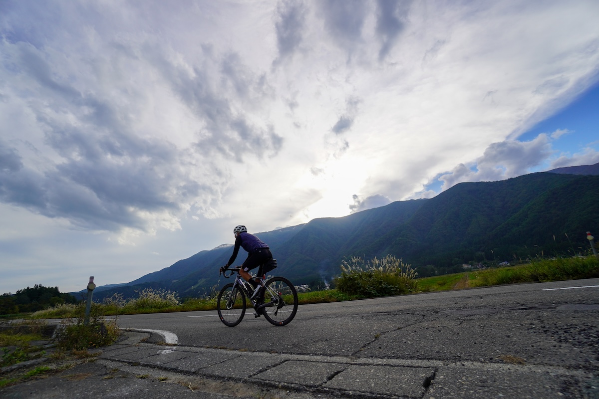 野尻湖でひと息入れたのち、北国街道から信濃信州新線(県道36号)に入って戸隠山と飯縄(いいづな)山の間を抜けていく。木々が生い茂る静寂な空間に包まれたヒルクライムはどこか神秘的でもある。戸隠(とがくし)神社に至る約20kmの道中には勾配10%超の区間がいくつかあり、「この上りが29kmも続くとさすがに脚にきますね」と山田さんは苦笑する。4日間の行程のなかで、ここが一番印象に残っていると振り返る。
