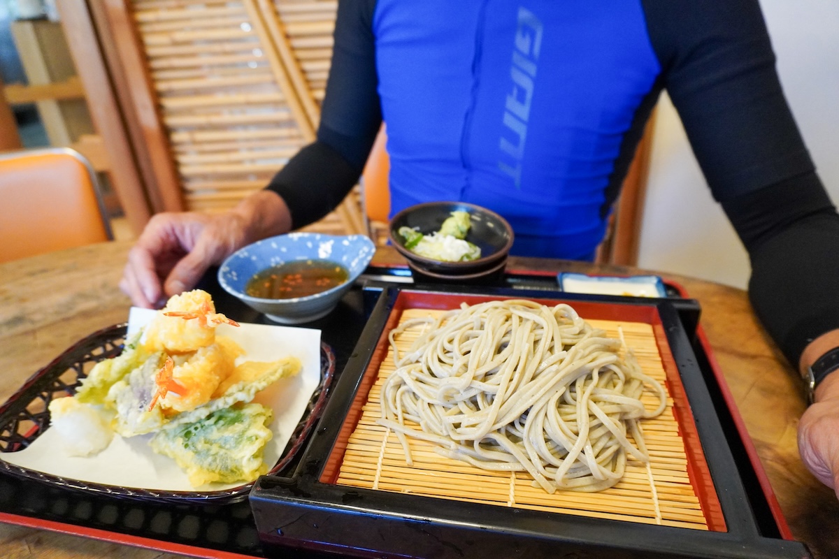この日は本当に上りが多く、白馬村に向かう途中には大望(だいぼう)峠と白沢峠がある。大望峠は、戸隠と鬼無里(きなさ)の境にあり、上りは約3km。頂上付近の展望台からの眺めがいいことでも知られている。予定通り13時ごろまでに全員が旅の駅 鬼無里に到着し、それぞれランチ休憩をとった。