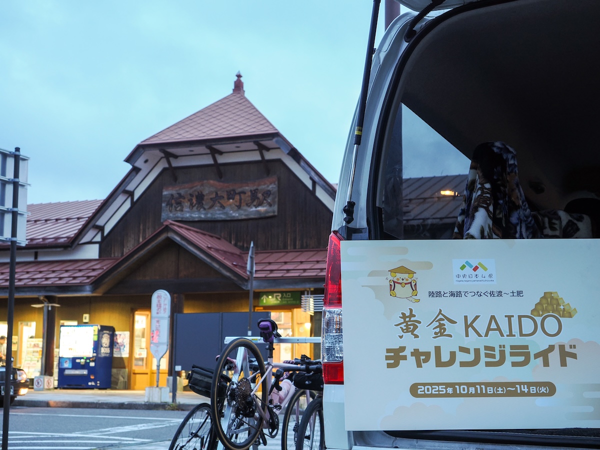 2025年10月11日(土)~14日(火)の4日間、日本海から太平洋までを走り抜ける「黄金(おうごん)KAIDOチャレンジライド」が開催された。黄金KAIDOとは、徳川家康公が開発に力を注いだ、佐渡金山、土肥金山、そしてその道中にある湯之奥金山、金鶏(きんけい)金山を結んだルートのこと。新潟・長野・山梨・静岡の4県が共同して整備を進めており、サイクリストが走り、自然や歴史に触れ、楽しめるコースが設定されている。