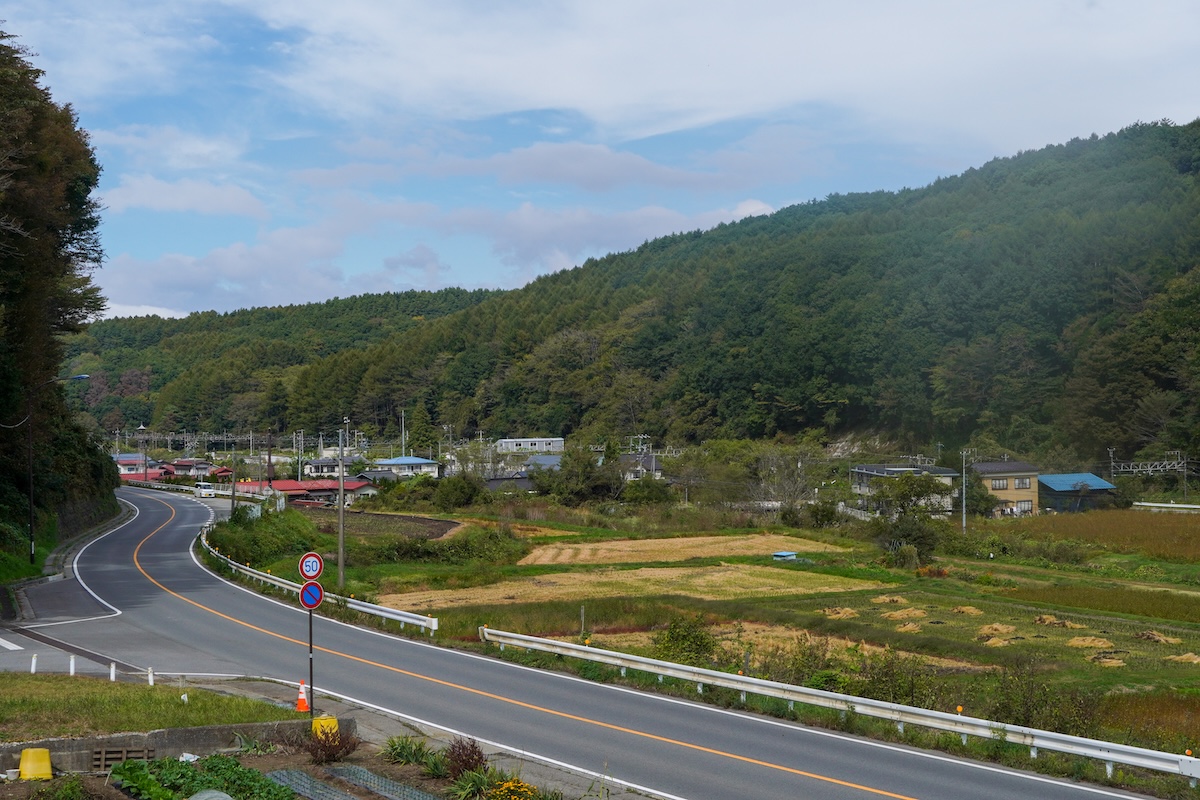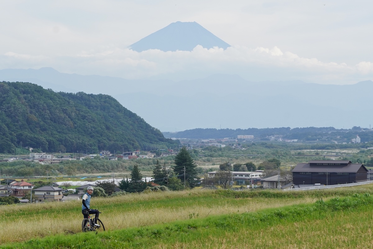 諏訪湖から国道20号を南下すると、ゆるやかな上りが約10km続く。やがて道は高原の町・富士見町に入り、そこから下りへ。気づけば3県目の山梨県に突入だ。北杜市や韮崎市では、正面に富士山、背後に八ヶ岳、右手には南アルプスの鳳凰三山――まるでサイクリストを歓迎するような雄大な景色が、「よく来たね」と語りかけてくるようだった。