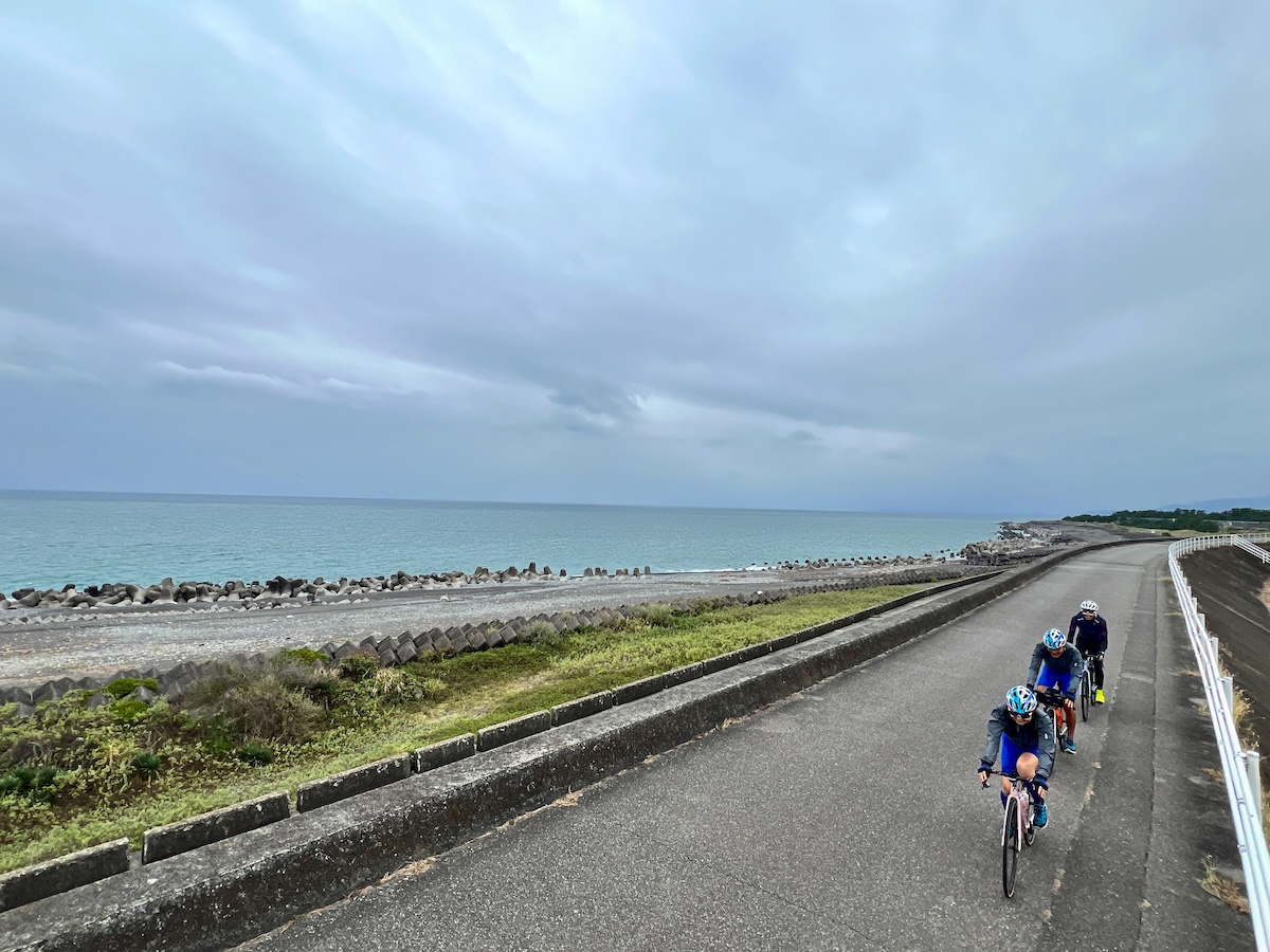 心地よい潮風が吹き抜ける太平洋岸自転車道。ゴールの沼津港まで残すは平坦な道20kmだ。日本海から山々を越え、歴史を刻む道を走り継いでついに駿河湾へ――いよいよ4日間の旅路の集大成、中央日本4県を縦断する黄金KAIDOの制覇が目前に迫った。3人とも元気な姿で無事にフィニッシュし、おたがいに喜び、健闘をたたえながら幕を閉じた。