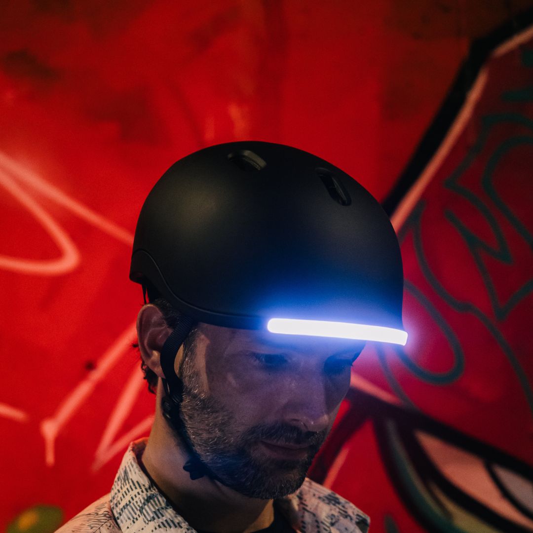 • 前後にウインカー機能付きのLEDライトを搭載した、安全性とスタイルを兼ね備えたスマートヘルメット