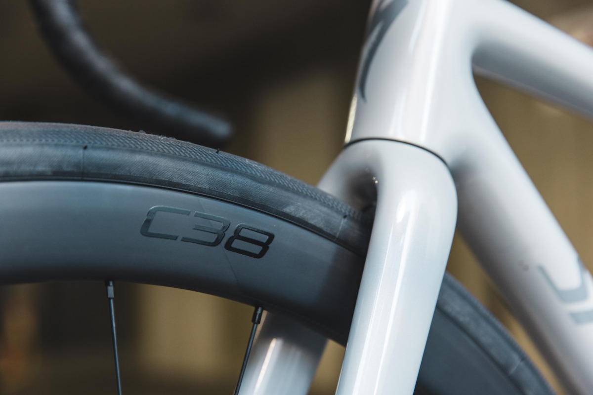 “より多くのライダーに”を実現するのは、ジオメトリとタイヤクリアランスの変更だ。安定感を高めるためにBBハイトは3mmほど下げられ、ヘッドは0.5度ほど寝かされた。ヘッド長は8mm~15mmと大幅に長くなったが、これは「エートスオーナーはステム下にスペーサーを入れているケースが大半である」という調査結果によるものだという。タイヤクリアランスは35Cまで拡張され、エンデュランスロード的な使い方にも対応する。