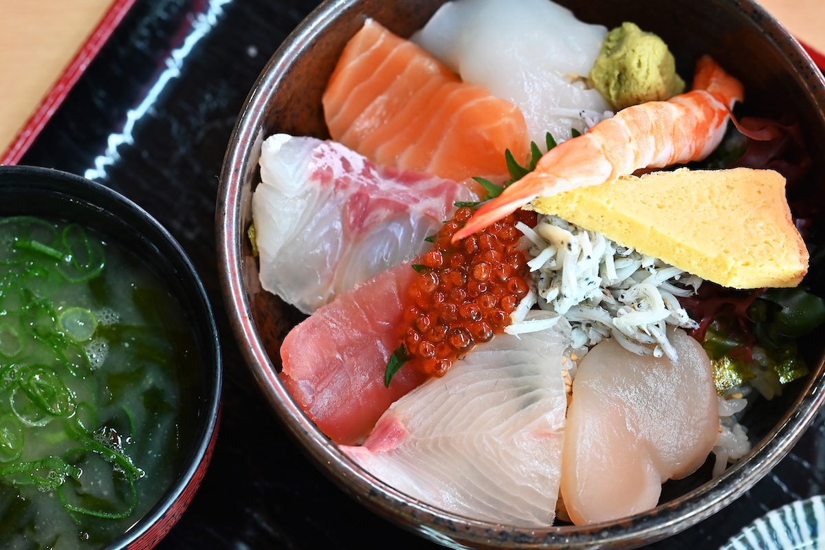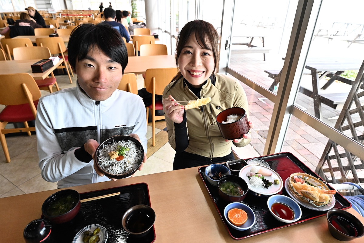 道の駅のレストランで、私は「釜揚げしらす丼」と単品で「せんざんき」を、あむちゃんは地元の海の幸が詰まった「来島御膳」を注文。
