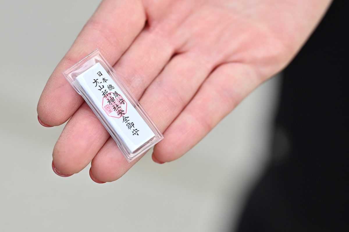 厳かな雰囲気の中で参拝を済ませ、「ヘルメット守り」を購入した。