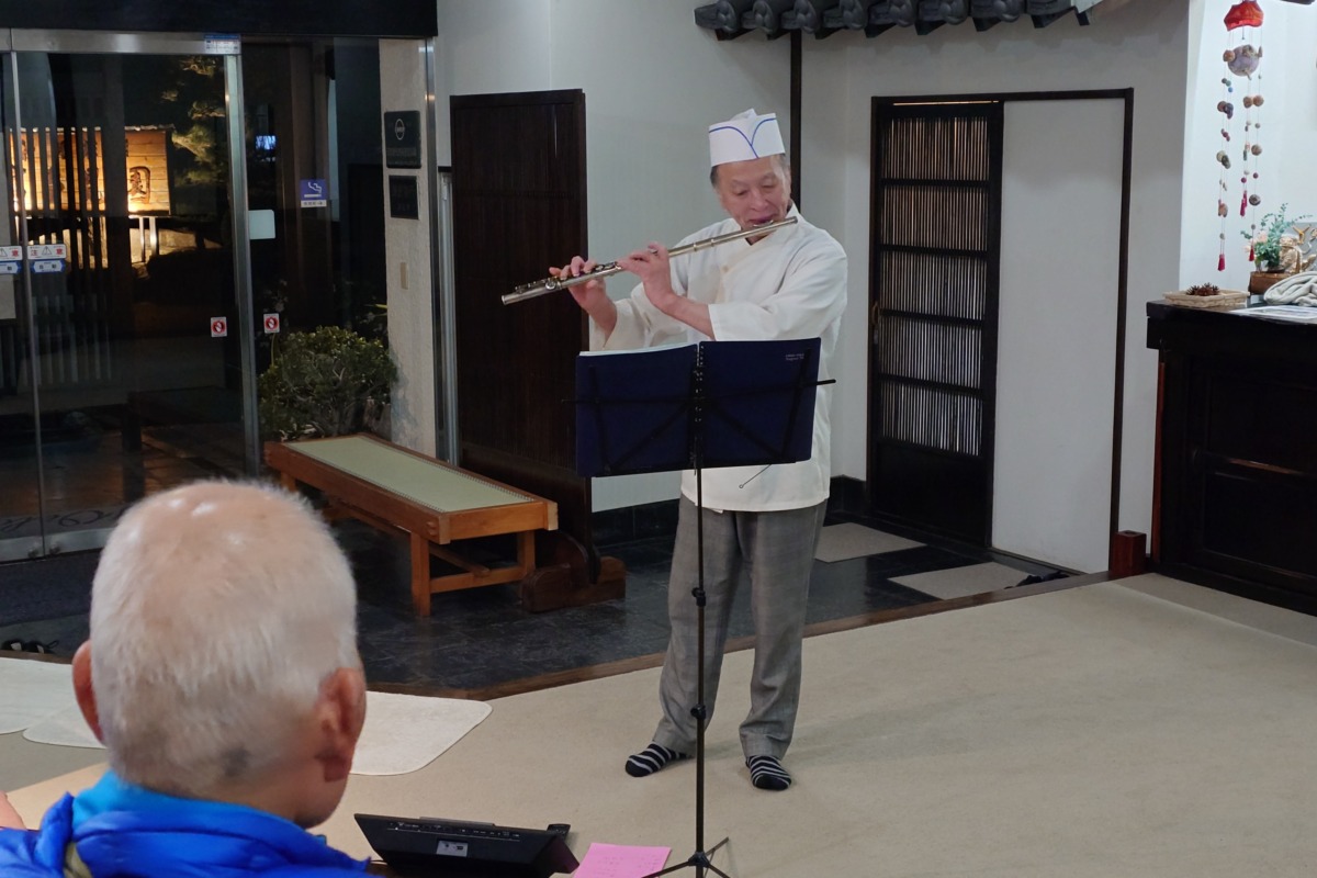 ここで行われるのが、この宿の名物イベント、板長によるフルートの生演奏だ。