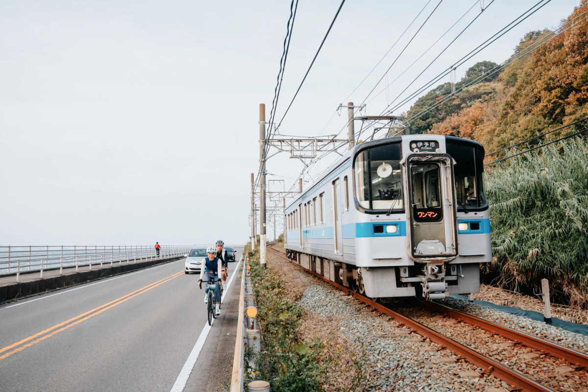 自転車をそのまま列車に持ち込める「サイクルトレイン」を活用したプラン。予讃線の車窓から瀬戸内海を眺めつつ移動し、主要スポットをおいしいとこ取りで走ることができる。鉄道ファンやのんびり派にも最適だ。