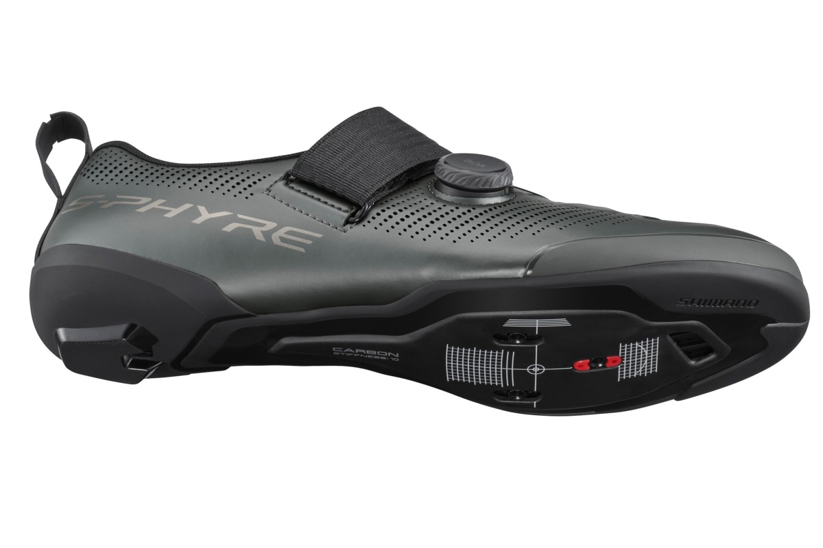 素早いトランジションと確実なパワー伝達を追求したトライアスロンシューズ「S-PHYRE TR903」。レースシーンで求められる操作性とフィット性を備えたフラッグシップモデルに、既存カラーの「ブルー」に加えて、シマノ公式サイクリングオンラインストア限定カラーとして新たに「マットガンメタル」が加わった。