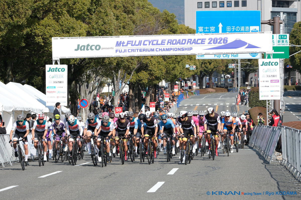 2月28日から3月1日にかけて、静岡県富士市にて「第5回Jatco presents 富士山サイクルロードレース2026」が開催された。メインイベントである富士クリテリウムチャンピオンシップ決勝レースは、大集団でのスプリント勝負となり、山本哲央(TEAM UKYO)が優勝。2位にチームメイトの窪木一茂が続き、TEAM UKYOが圧倒的な強さでワンツーフィニッシュを飾った。
