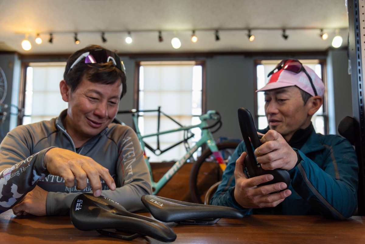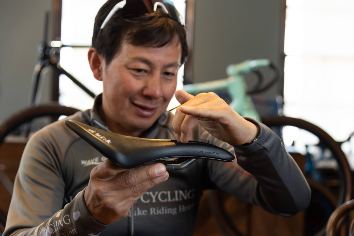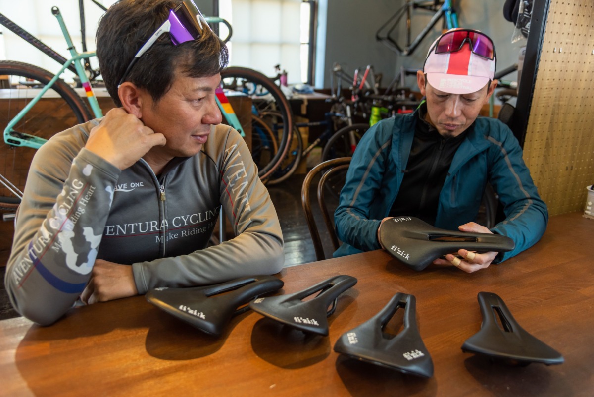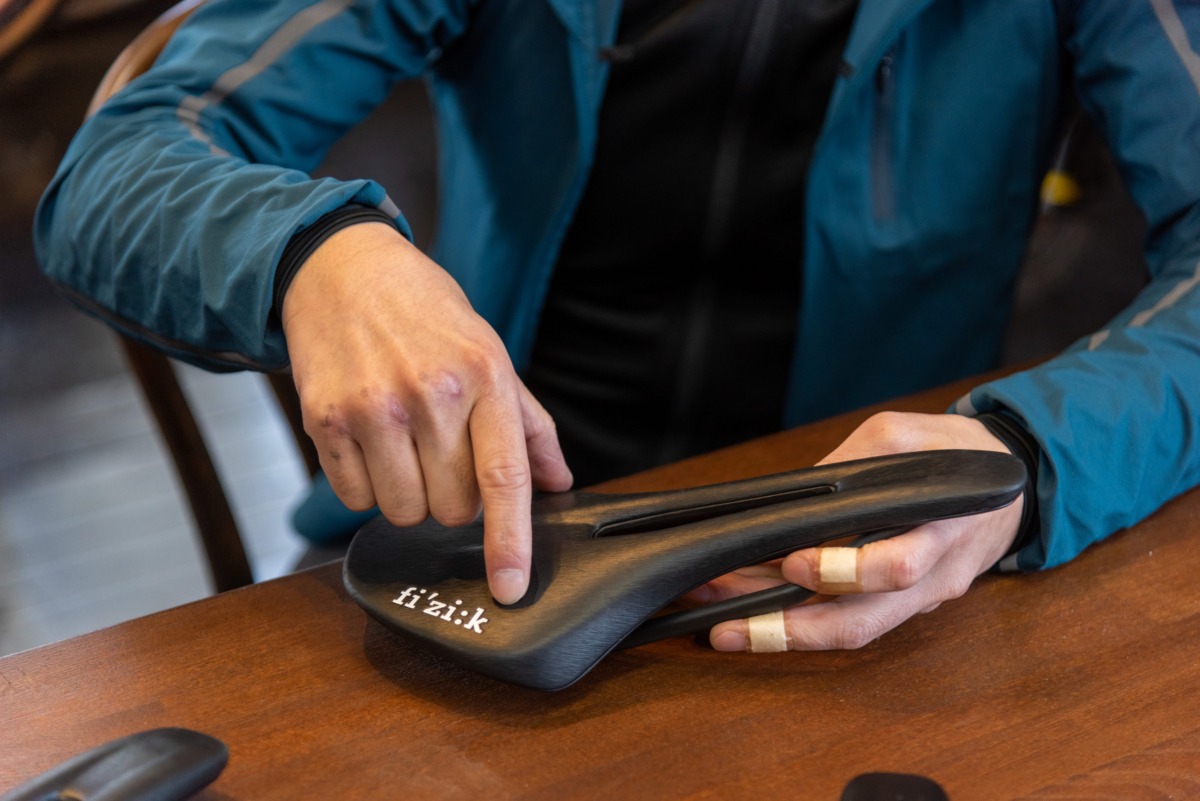 菅:自分は競技をやっていた頃の名残りで、サドルの前に恥骨を引っかけるようにしてペダリングをすることが多いんです。そのほうがハンドルを引いてパワーを出せるから。だから恥骨が引っ掛かりやすい湾曲したサドルが好みですね。あとは乗車位置を変えるので座面が長いほうが好きです。