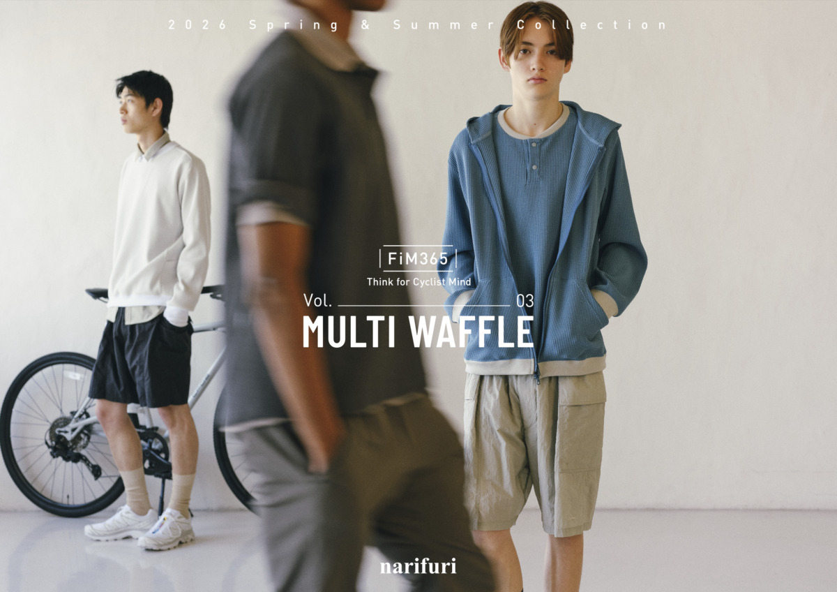 ファッションと自転車を融合させたカジュアルサイクルウェアの先駆者であるnarifuri(ナリフリ)が、ブランドの10年先を見据えた新プロジェクト「Freedom in Motion 365(F/i/M 365)」をスタートさせた。第1弾として、高機能素材SOLOTEX®を用いた「MULTI WAFFLE」シリーズの新作や新色を3月13日(金)より発売する。