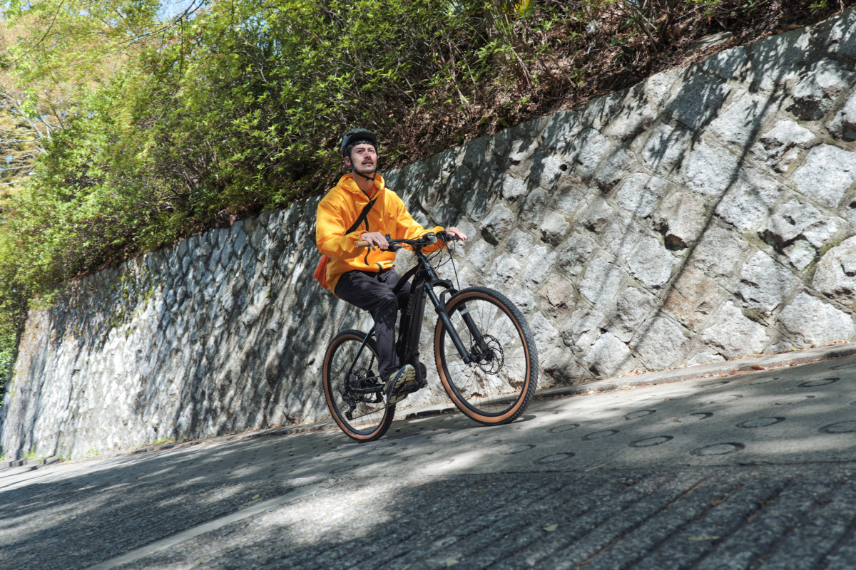 都市の中でまず感じるのは、走りの自然さだ。信号で止まり、踏み出す。その繰り返しの中で、アシストは過剰に主張せず、あくまで自然に加わる。走りはもちろんeスポーツバイク。発進の軽さとスムーズさは、日常の移動を確実に快適なものへ変える。