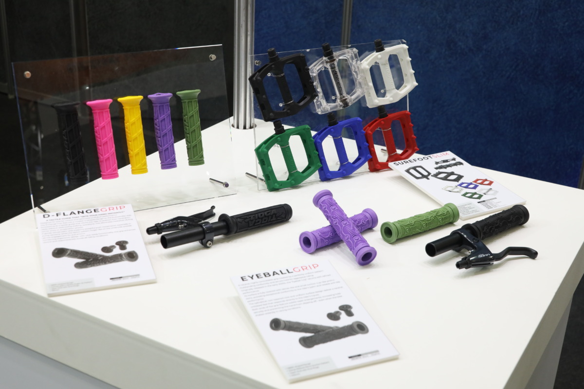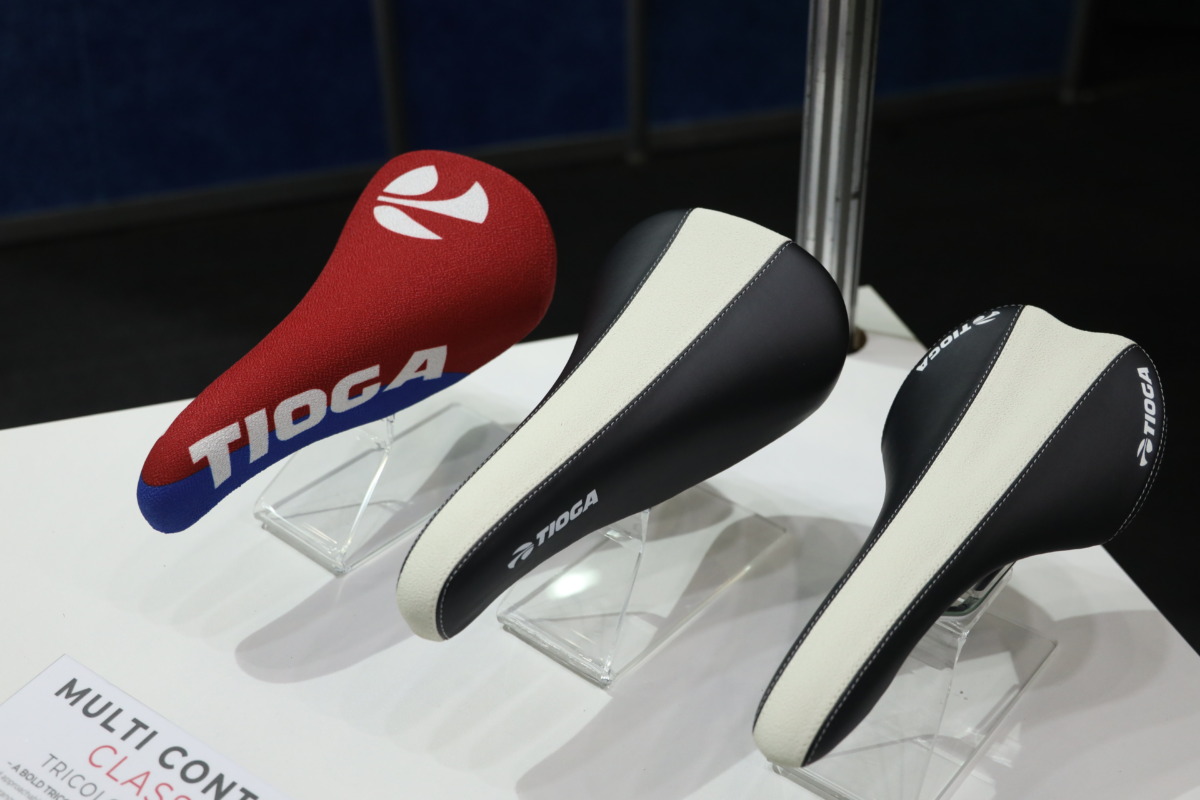 現在ではBMXレーシングブランドとして注目を集めるTIOGAだが、今回オールドMTBにフィットする商品をラインナップ。復刻版のグリップに加え、ジョン・トマックなど伝説のライダーが使っていたころのグラフィックを再現したモデルも展示された。