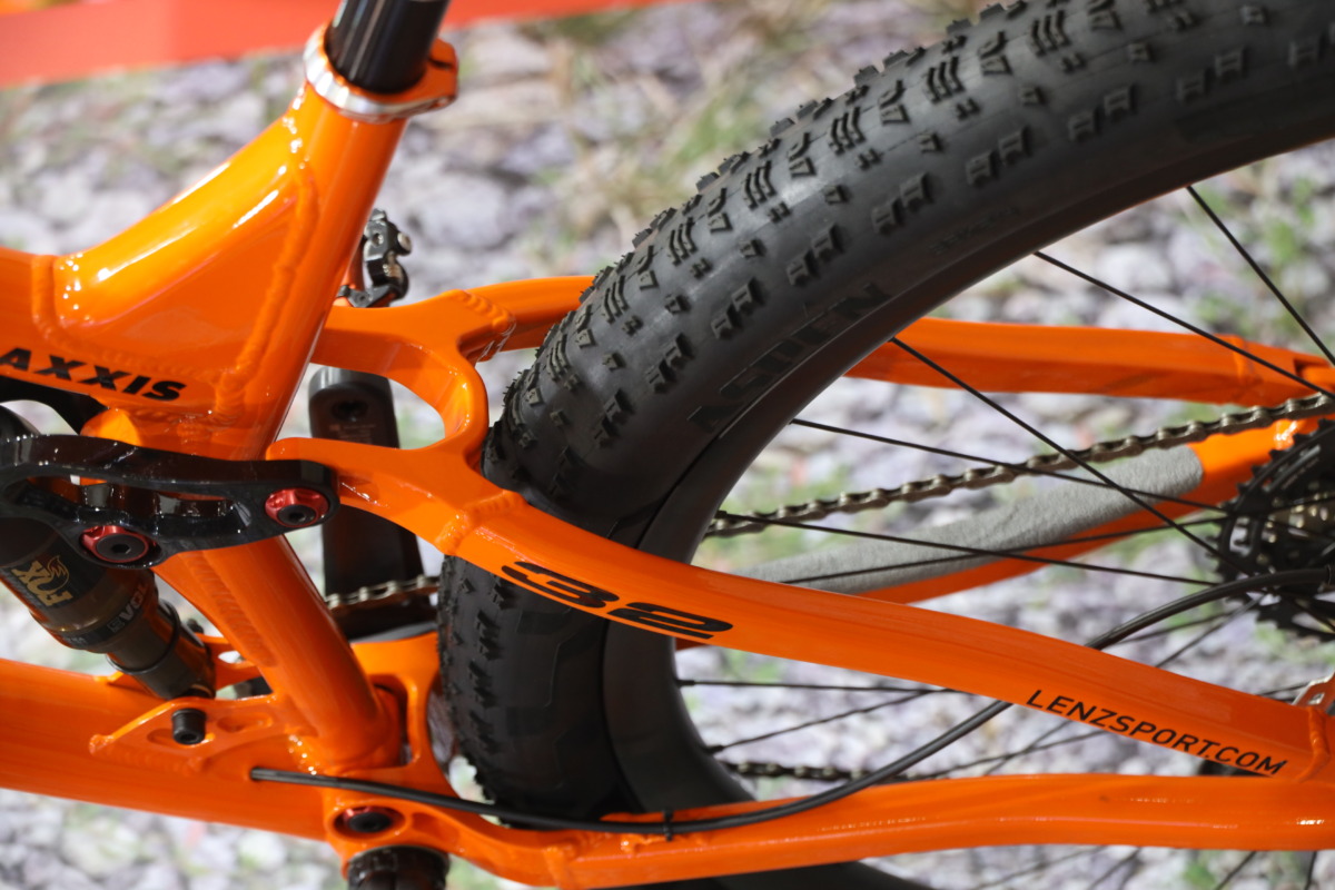 マキシスブースには32インチのアスペンを使ったプロトタイプバイクが飾られていた。ただし、現時点では大手完成車メーカーからの正式発表はなく、ジオメトリーの制約など解決しないといけない課題があるのも事実だ。今後の動きに注目したい。
