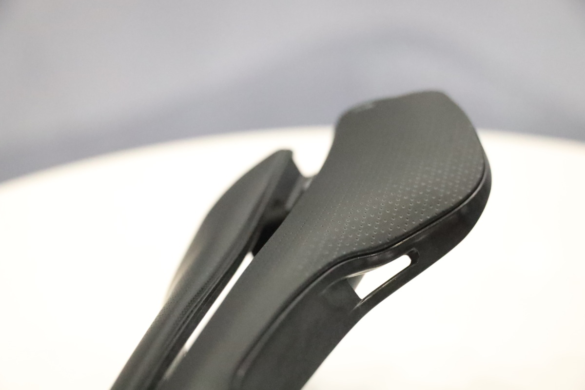 形状はコンパクトな240×140mmで、T字型かつセミラウンドプロファイルを採用。次世代の可変密度フォームと圧力解析により、ペダリング中のあらゆる局面で安定した座り心地を提供する。また、NACKカーボンレールをサイドウイングで覆う独自構造により、空気の流れを最適化し高いエアロ性能を発揮する。