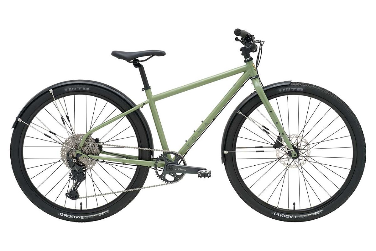 シリーズ最上級モデル。クラシックな魅力を持つフルクロモリフレーム&フォークに、フロント12x100mm、リア12x142mmのスルーアクスルを採用。Shimano CUES 1×11速ドライブトレインと油圧ディスクブレーキを搭載し、フルフェンダーとキックスタンドも標準装備する。