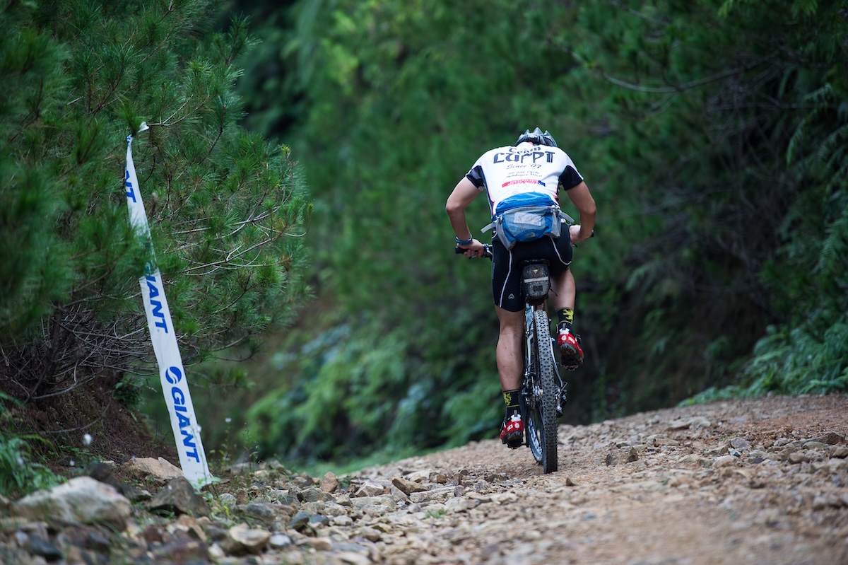 用意されるメインコースは、まさに”究極”。最高峰の「アルティメットクラス」は距離130kmを超え、オフロード率は約50%、最大比高約800m、そして獲得標高はなんと3,000mを超える。ひたすら続くアップダウンが確実にライダーの体力を削っていく、国内屈指の過酷なクロスカントリーマラソンコースだ。