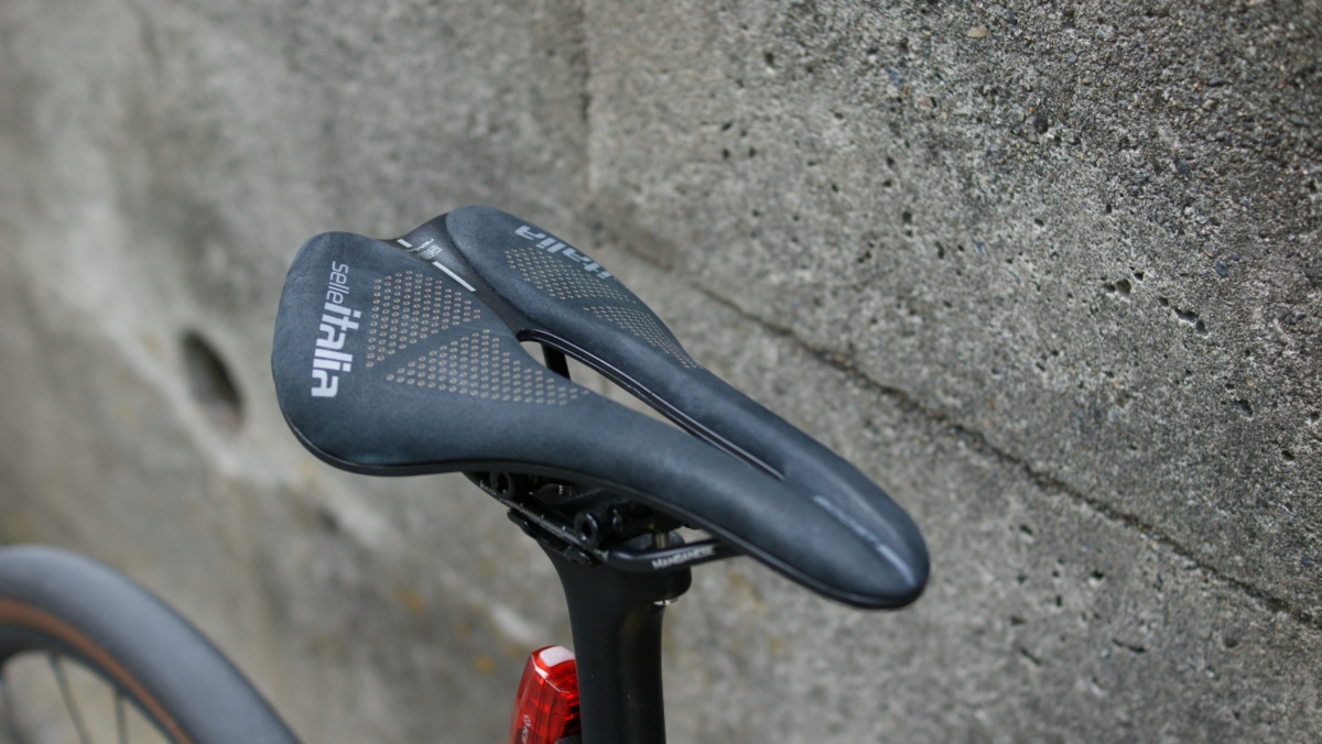 中央部には大きなカットアウトを設ける「スーパーフロー形状」が取り入れられており、深い前傾姿勢でも会陰部への圧迫を大幅に軽減してくれる。ルックスだけでなく、長距離を快適に走り切るための機能はしっかりと引き継がれている。