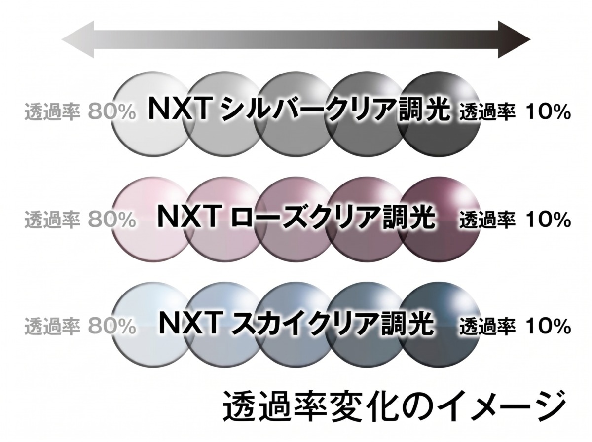 • クリスタルクリア(NXTシルバークリア調光:可視光線透過率 80%~10%)
