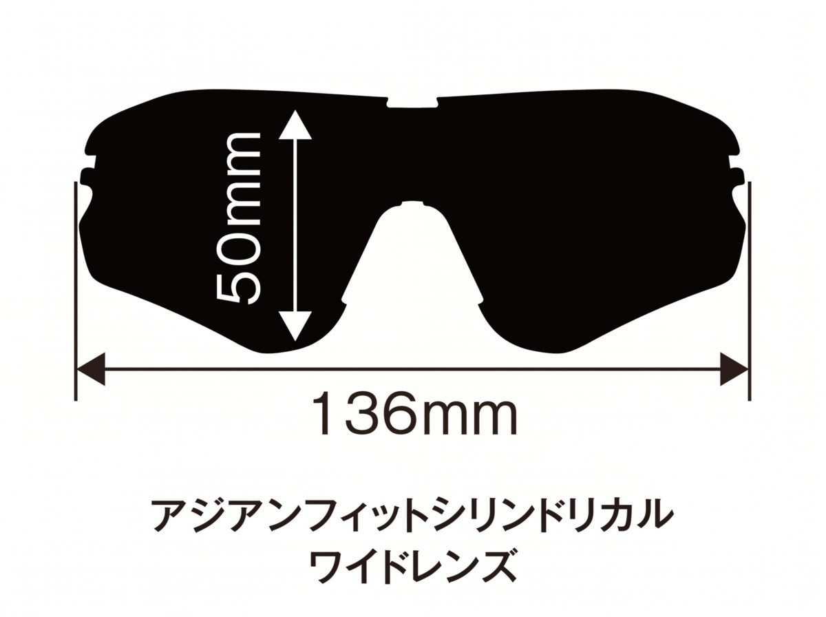 レンズシェイプは、日本人の顔に馴染みやすいアジアンフィットの「シリンドリカル(円柱型)ワイドレンズ」を採用。広い視界を確保するだけでなく、頬骨に干渉しにくい優れたフィット感を実現している。また、ノーズパッドは3段階で高さ調整が可能となっており、ユーザー個々の骨格に合わせたベストな安定感を得ることができる。