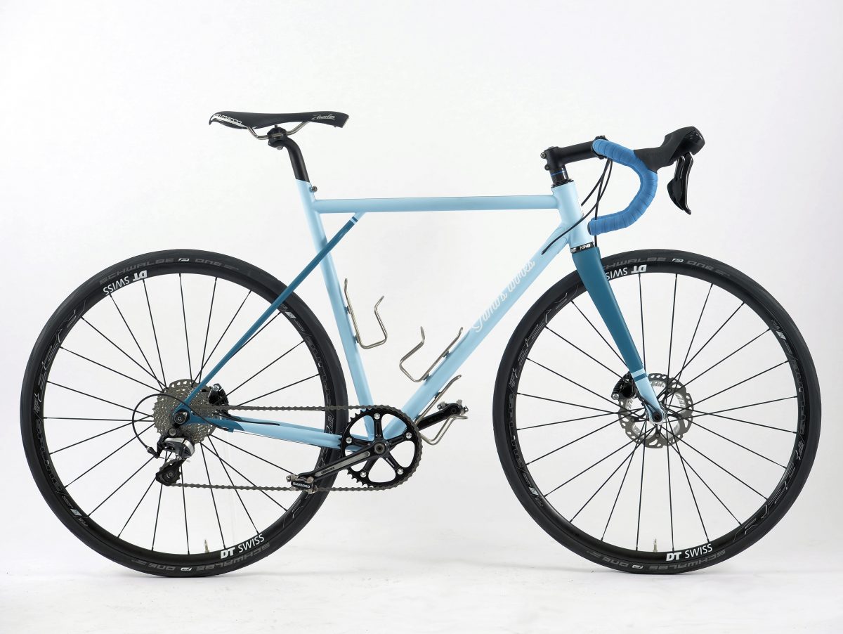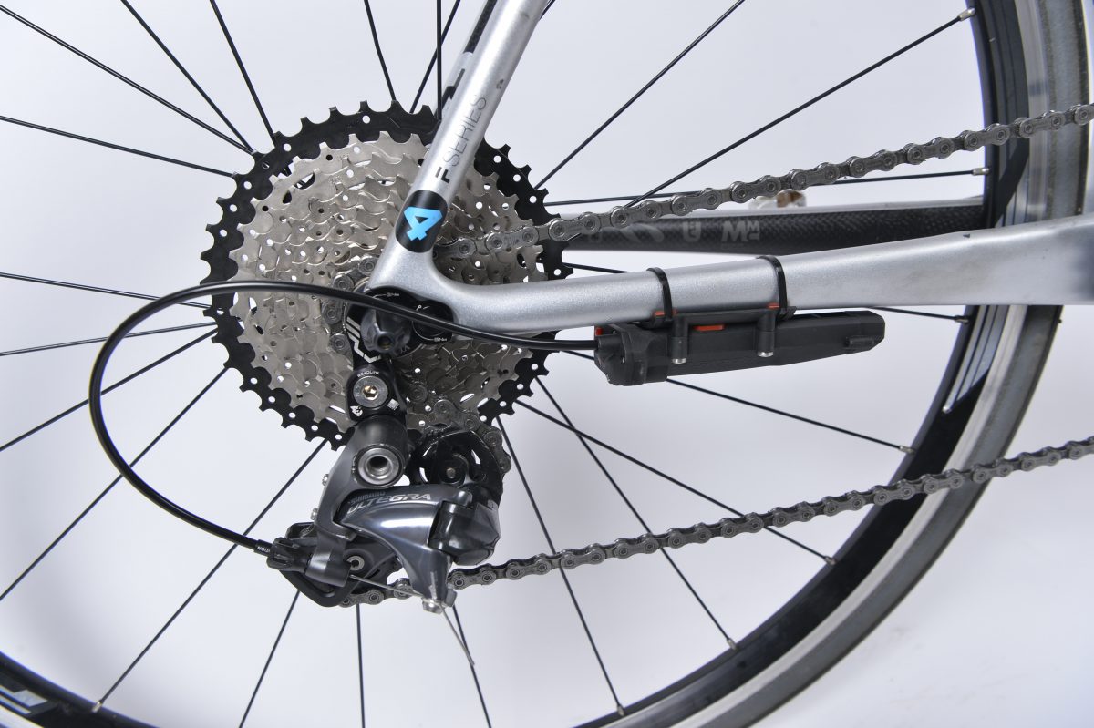スペーサーを挟むことでフレームに対してまっすぐ装着でき、かつホイールとのクリアランスも問題なし。さらに、バッテリーを下側から外しやすいようにマウントしたことで、オリジナルの付属マウントに比べても利便性が増した。これで機械式コンポを美しく電動化することができるようになった。