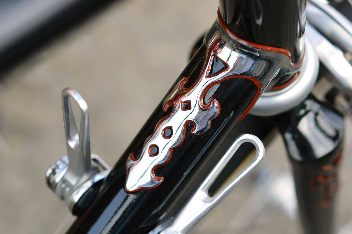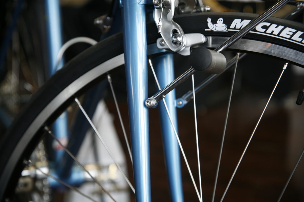ほとんどの自転車のフロントフォークはエンドをオフセットさせることで、走行中の直進性や操舵性をコントロールしている。そのオフセットをさせるための加工が「曲げ」で、そのシルエットも重要なポイント。滑らかなアールを描いたフォークブレードのほうが美しいとされ、ロードレーサーでは剣先曲げ、ツーリングでは先曲げが多い。