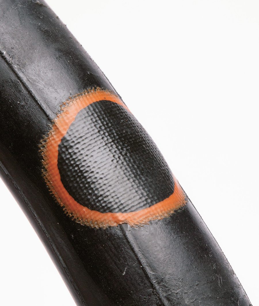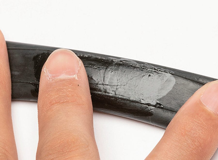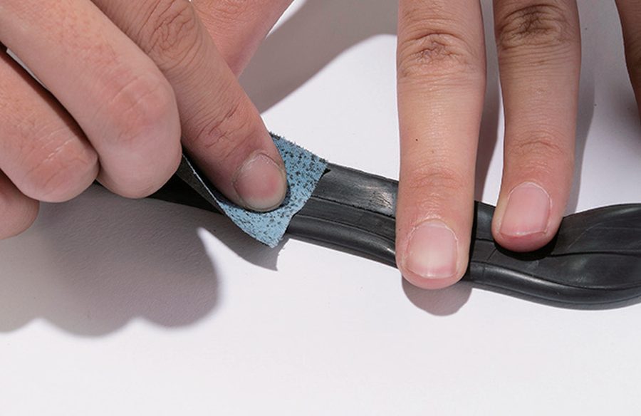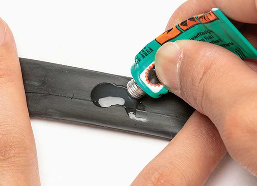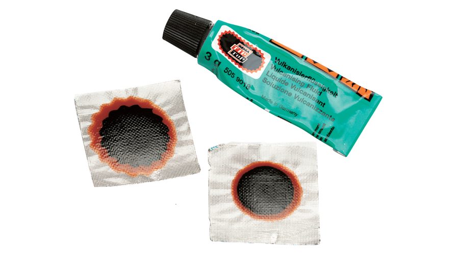 ゴム糊は接着材ではなく加硫剤で、ゴム同士を溶かして一体化させるというメカニズム。乾かす=時間を置くことでゴムが溶け、パッチが付きやすくなるのがポイントだ。そのため、焦って貼ると逆にパッチが付かなくなってしまう。