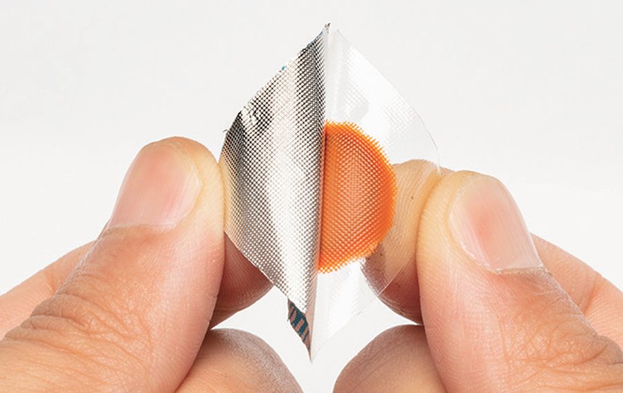台紙(銀紙)をゆっくりはがす。オレンジの面がチューブに貼る面なので、ここにもゴミが付かないように注意しよう。