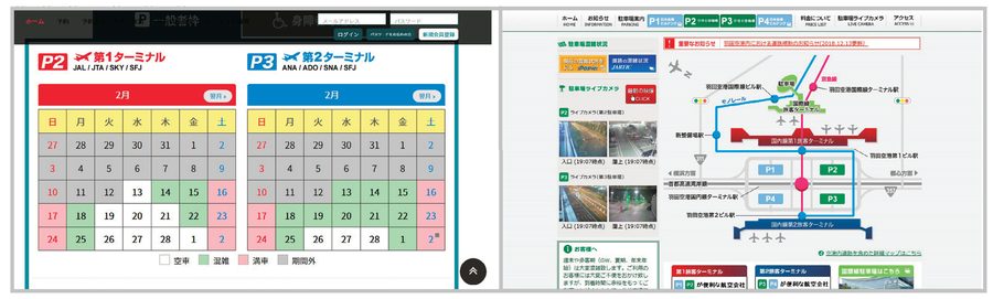 羽田空港の予約サービスは、別途1000円かかる。また週末はほぼ満車。ただし予約エリア以外は空いていることもある。駐車場のサイトで、リアルタイムで状況をチェックできる