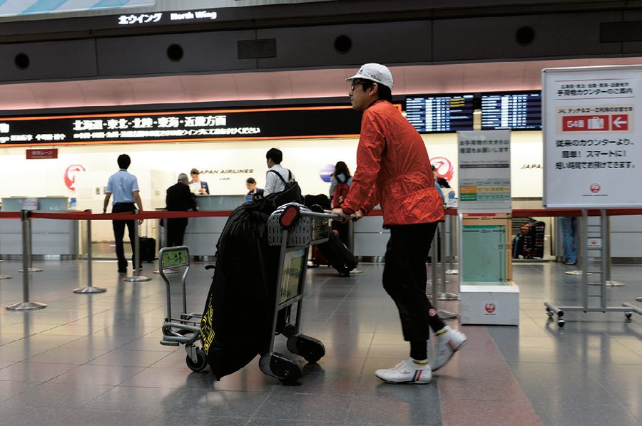 空港へはクルマ、空港では備え付けのカートを利用すれば、輪行袋をほとんど担がずに済む。羽田空港の場合、駐車場のエレベーターは狭いので要注意。駐車場の4階が連絡通路の階で、いちばんラク