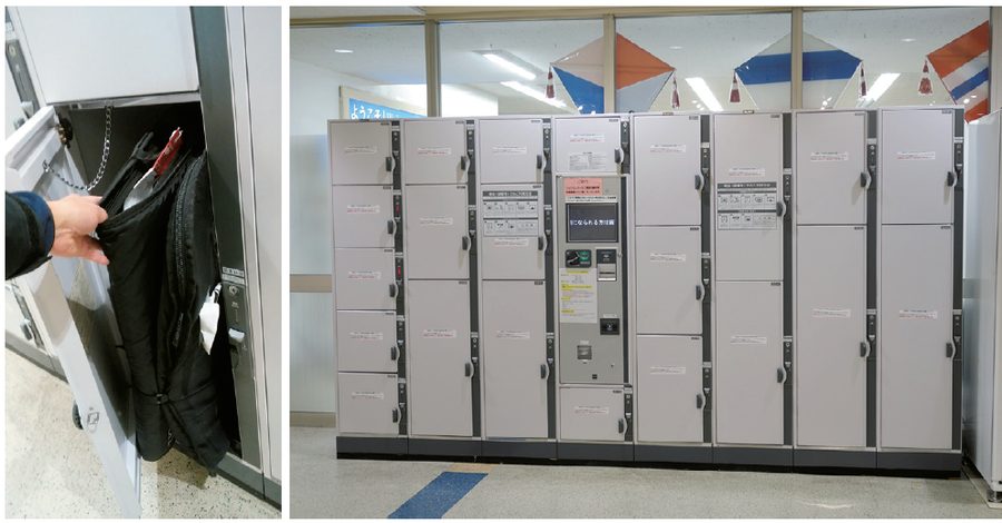 OS-500はたためるので、空港にあるコインロッカーに入れられるメリットは大きい。大、中、小あるロッカーの中サイズに納まる。料金は空港にもよるが1日500円くらいだ