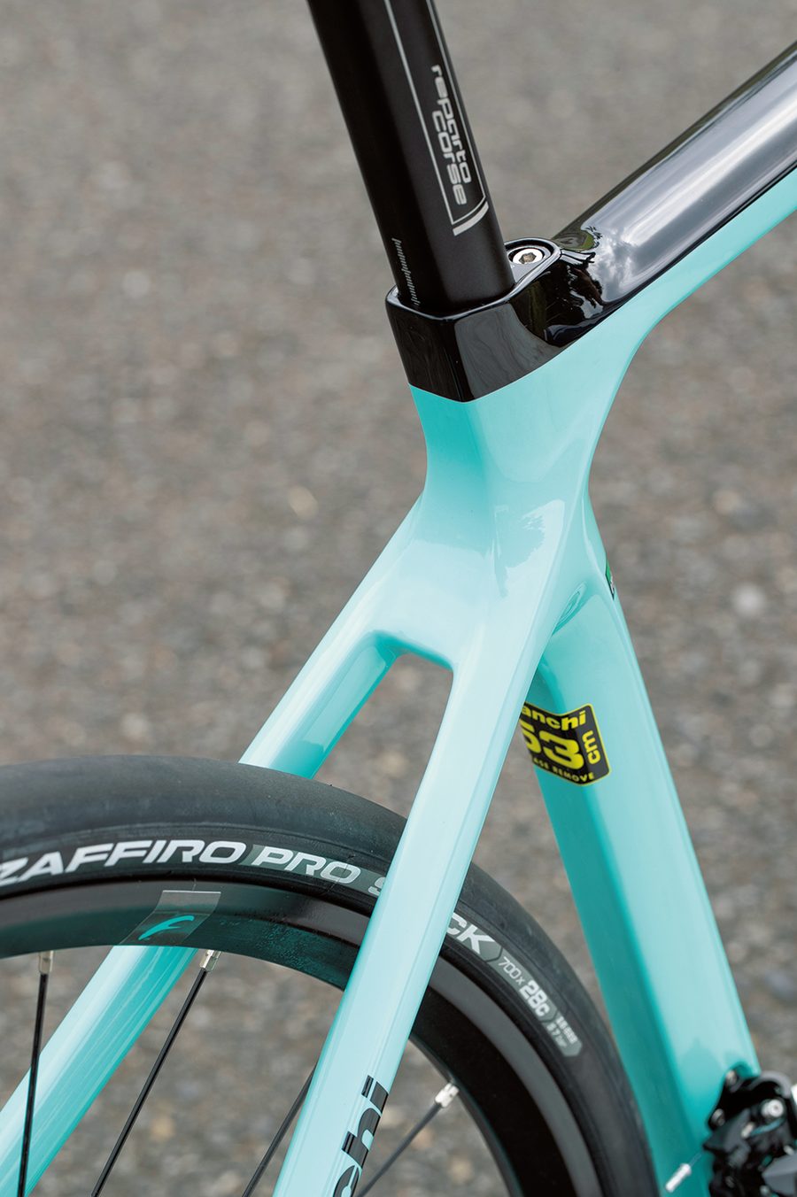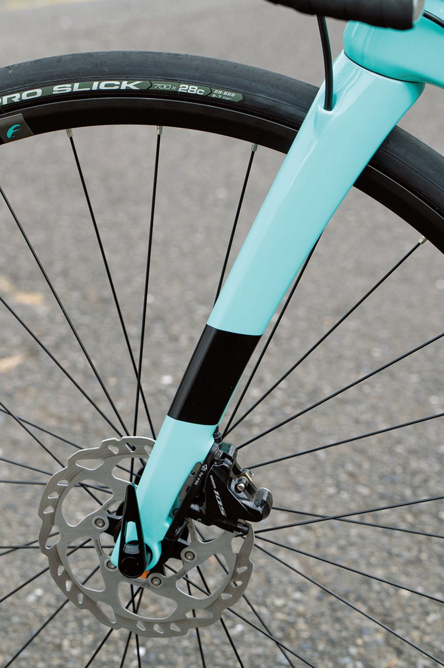 標準では28Cタイヤがアッセンブルされるが、よりレースライクなライディングなら25C、路面が悪い場合には32Cを選択するなど、それぞれの状況に合わせた味付けが可能だ。