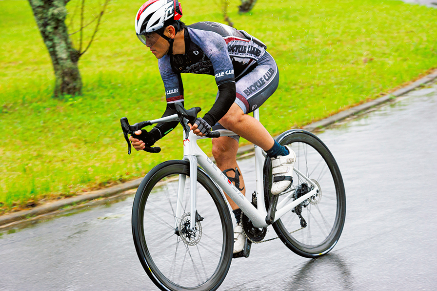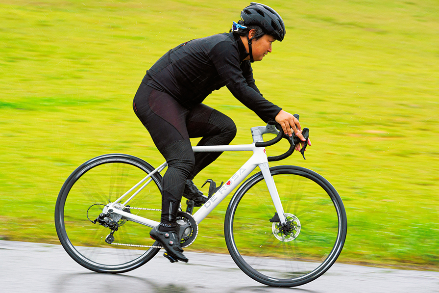 ヘッドまわりの剛性が高く、直線では安定感がある。いっぽうコーナーでは、軽く傾けるだけで素直に曲がっていくので、狙ったとおりに走れる素直な走りが印象的だ。さらに路面からの振動もマイルドに吸収し、小さいノイズから、大きいショックまでバランスよく収めてくれるので扱いやすい。また、全体としては剛性も十分ありながらも、重量もそれなりに軽くなっている。それでいて、踏み込んだときにBBがある程度しなってくれるのでほどよいテンポで上っていける。