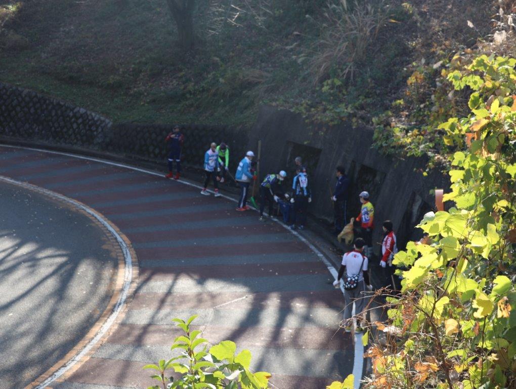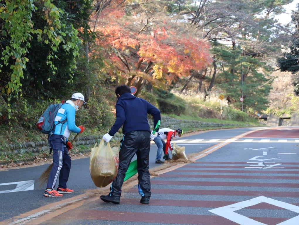 いろは坂清掃が今の形で始まったのは6年前。Jプロツアーで活躍した地元の野口悠真選手、八幡光哉選手選手たちが練習場所としてこのいろは坂を使っていたことに始まる。その道路を使うことを地域住民に理解してもらいたいという思いからはじまった。その後、この地域に住むサイクリストの中山 沢さんが発起人となり、年末に清掃活動を継続してきた。当初は20人のみだった参加者も、コロナ禍をへて一時は減ったものの50人近くまで回復した。この活動は東京2020を機会に東京2020応援プログラム承認活動として登録された。さらに2021年に開催された東京2020のパラリンピックではこのいろは坂でトレーニングをしていた選手のひとり、杉浦佳子選手が金メダルを獲得するなど、活動メンバーに喜びを与えてくれた。