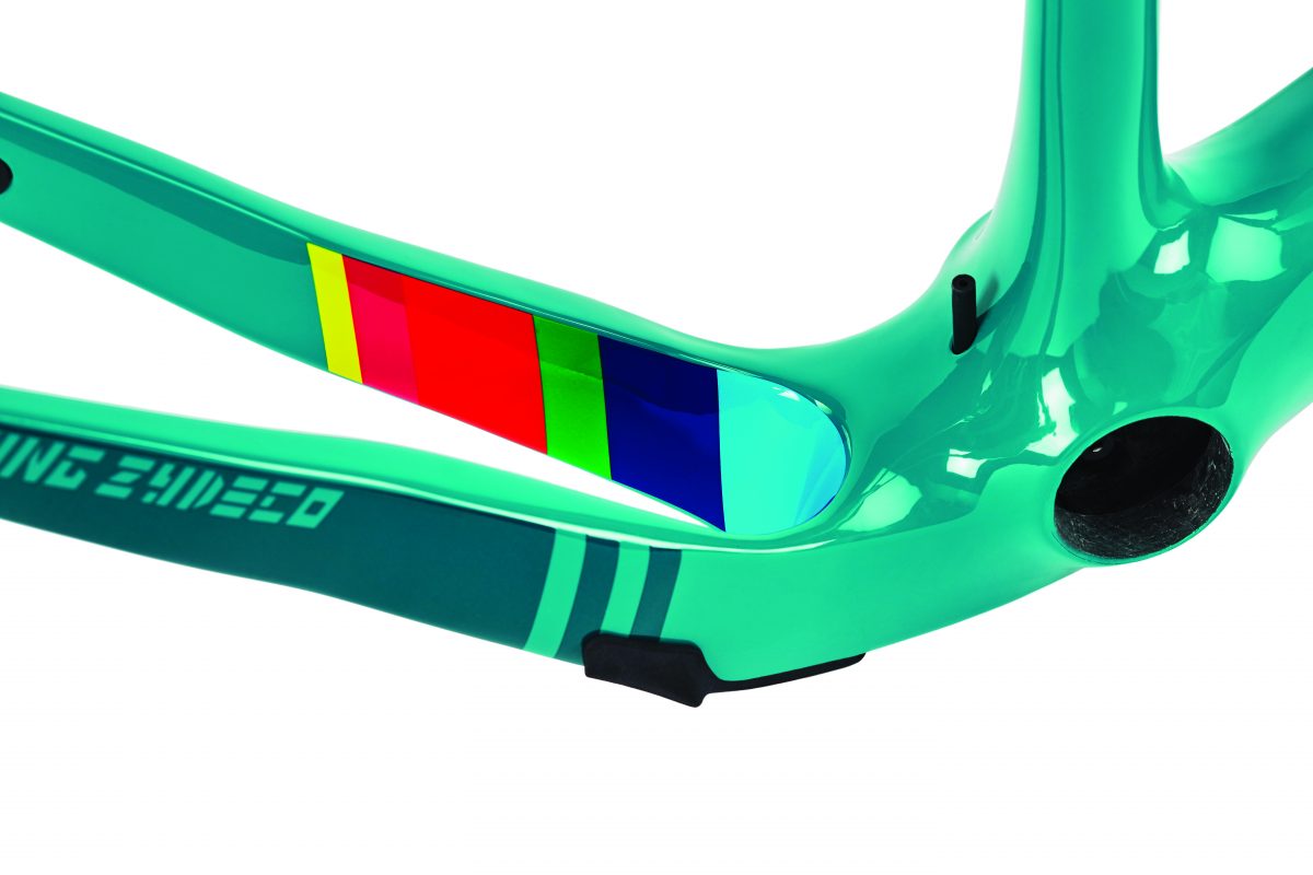 シマノ・DI2 およびカンパニョーロ・EPSに対応し、内部ケーブルルーティングに対応する
